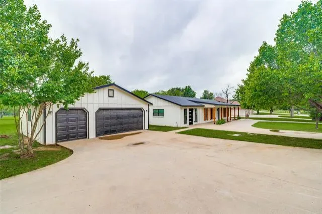 This stunning, like new, mid-century modern home offers stylish living with a flowing ranch-style layout and top-quality updates throughout. Set on two lots, it boasts a gourmet kitchen with brand-new stainless-steel appliances and matte-black finishes. The spa-inspired primary suite includes a soaking tub, spacious shower, and dual vanities. A private-entry flex suite is perfect for a home office, media room, or extra-large bedroom. Outdoor living shines with an open porch overlooking peaceful countryside views and frequent wildlife. An oversized 3-car garage on a separate lot adds convenience, storage, and its own patio retreat, connected to the home by a walkway. The property features its own well for irrigation and a newly installed septic system. Completely renovated inside and out, the expansive lot offers plenty of room for outdoor entertaining. A truly elevated property—see Private Remarks for the full list of upgrades.