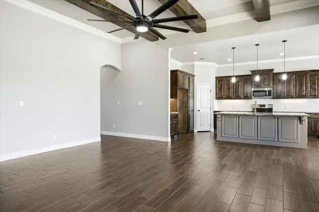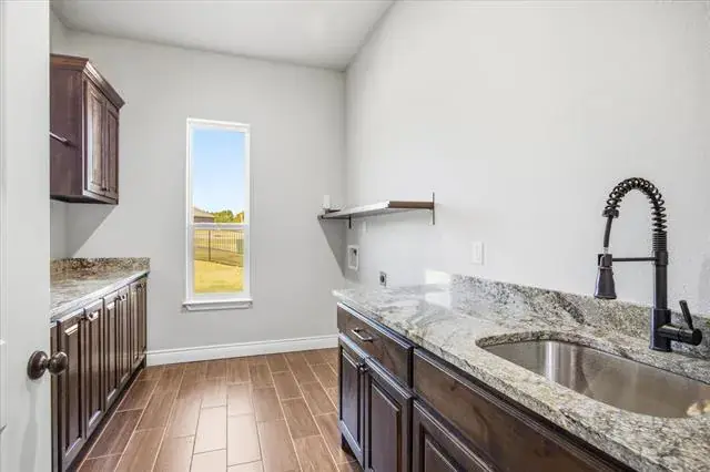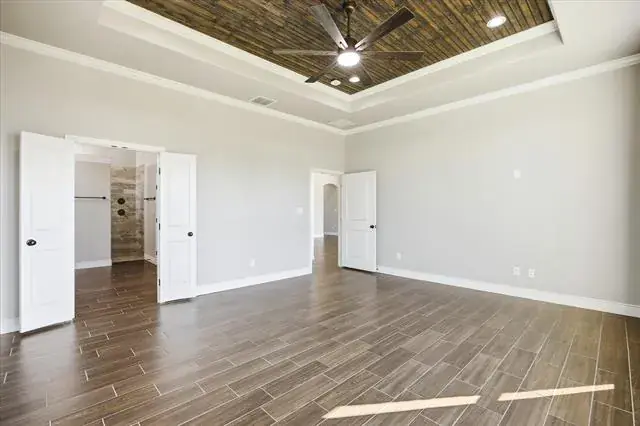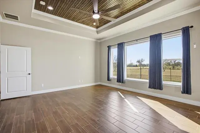 Custom Home in an excellent location on the Granbury Golf Course. This 4 bed 2.5 bath 3 car garage home sits on the Granbury Country Club Golf Course on a large lot with custom landscaping and large backyard. It features modern layout and design, open concept, wood-look tile throughout, custom stained beams and cabinetry, large kitchen island, chef’s kitchen, custom built-ins in the living room for extra storage, large master with custom en suite that features duel sinks and showers, a huge master closet that connects to the custom laundry and mud room, spacious spare bed rooms, a spare bath with dual sinks, granite everywhere and modern paint scheme throughout. Built with efficiency in mind with features like foam insulation, Trane HVAC, SS Energy Star appliances, efficient WH, double-paned windows, and foam cap attic space which all means huge savings on utility bills. Located close to shopping and entertainment and you can walk right on to the golf course. Come see this custom gem while you still can!