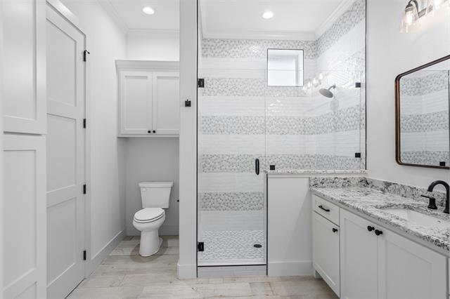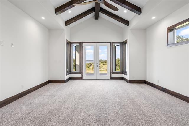 Luxurious new 5 bedroom, 6.5 bathroom showplace situated outside city limits on OVER 3 acres with breathtaking lake views of Lake Granbury & backing to a pond. The kitchen is a culinary enthusiast’s dream, featuring Soapstone Leathered Granite countertops, a massive walk-in pantry & a generously sized butler’s pantry featuring additional oven, additional dishwasher, and a large side-by-side refrigerator & freezer. Exquisite custom woodwork, multiple ice makers & tankless water heaters add convenience & efficiency to daily living. Thoughtful mother-in-law suite with separate entrance. Each of the spacious bedrooms has an ensuite bathroom. Entertain in style in the game room, complete with striking ceiling beams or the media room upstairs, each featuring a wet bar. Office ensures a view with stylish and modern glass wall, while the gym area offers a perfect spot for your workouts. Enjoy an outdoor kitchen and fireplace for socializing & relaxing. Practical features include spray foam insulation, 3 car garage with an epoxy floor & stairs leading to attic storage, as well as circle driveway for ample parking. Distinguished lifestyle & refined living at your fingertips. Welcome home!