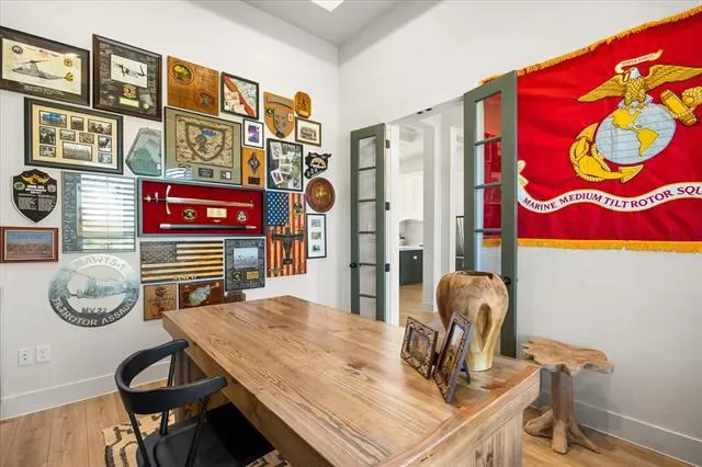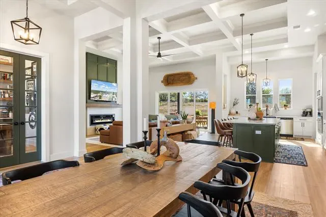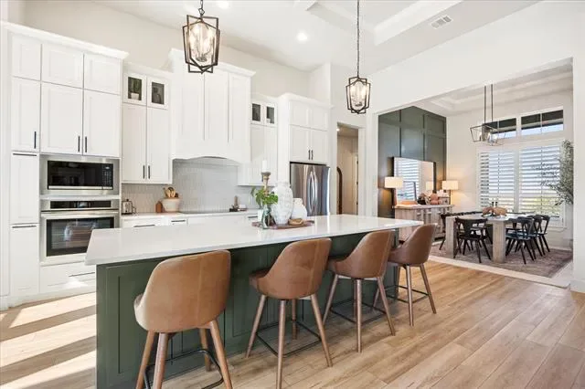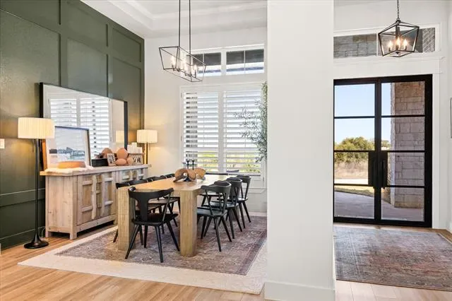 Check out this stunning 4 bedroom 2.5 bath, office area, open concept home with a 3 car garage in Luker Ranch just South of Granbury. This home was built in 2023 by Stella Rose Homes. Take a second and come see for yourself this home is magazine beautiful…with many added amentites. The home has an ensuite primary quarters away from the other 3 bedrooms for privacy, the ensuite bedroom, bath is a homeowners dream with walkin shower and tub area a double vanity and walk in closet that carries through to the utility room for ease and comfort. The home has office off the front entry, walking into a large open living room that has kitchen and island area for entertaining, or carry your party out the back through the large sliding glass doors to the 16 x16 covered patio for evening events. Home has added custom plantation shutters, epoxy flooring and 2 overhead storage areas in the oversized garage, custom floor to ceiling linen cabinetry in the laundry room for organization and storage. Designer gallery lighting installed in the living room to showcase artwork and modern appeal, dramatic 14 foot coffered ceilings for the great room creating an open elegant living space. Home has a dedicated bar area with refrigerator for wines and beverages just off the kitchen area. This home is a must see, dont wait call today and come see this beautiful home.