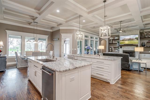STOP THE CAR!!! Incredible home, variation of Couto Executive Series Marion floor plan. Spacious single story luxury home offers over 4000 SQFT of thoughtfully designed living space with 4 bedrooms &' 4 bathrooms, flexible living areas &' exceptional indoor outdoor flow. Open-concept layout connects the great room, chef’s kitchen, &' dining areas, creating the ideal space for entertaining &' everyday living. Welcoming foyer leads to a private home office with French doors &' built-ins. Large family room features a beautiful fireplace &' expansive windows that fill the home with natural light, overlooking outdoor living area, saltwater play pool &' spa. Chef’s kitchen is a showstopper with double oven, double islands with seating, custom cabinetry, KitchenAid appliances, abundant counter space, walk-in pantry. Flows seamlessly into both breakfast area &' dining space for casual or formal gatherings. Private primary suite offers a spacious retreat with a spa-inspired bath featuring dual vanities, oversized walk-in shower, &' large walk-in closet. Secondary bedrooms are split for privacy, 23×17 game room provides additional flexible space. Addtl features include large utility room with sink, mudroom, ice maker line to fridge, laundry room with storage, 4-car garage, epoxy floor. Outdoor living is exceptional with over 1000 SQFT of covered living space, plus a saltwater pool &' spa. Property includes DEEDED deep-water boat slip on LAKE GRANBURY with HydroHoist that conveys. Notable upgrades include foam encapsulation, plantation shutters throughout, Class 4 shingles, Rinnai tankless water heaters, whole house water filtration with RO at kitchen sink and more! Ask for the full feature list!
