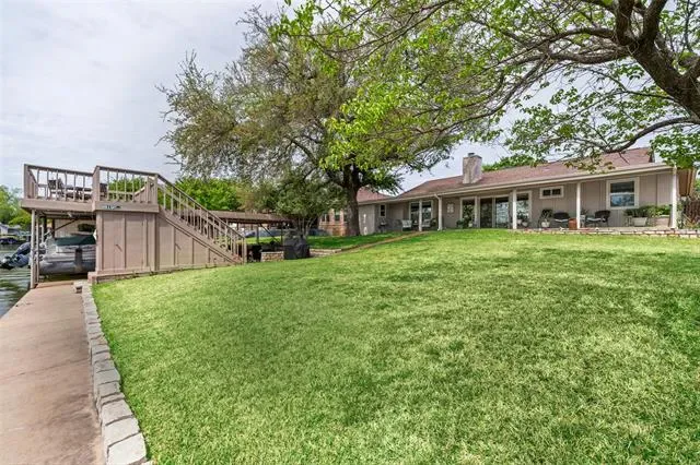 Welcome home to your pristine waterfront magnificence on Lake Granbury! This 3 bedroom, 2 FULL bath home has plenty of space to be used as a vacation home, a permanent home or even a short-term rental, which IS allowed! No HOA to deal with, outside city limits. Pefectly landscaped, and with plenty of parking under a deluxe carport AND a 2 car garage, there is plenty of room for guests or family. Through the door, you are greeted by a spacious living room with WBFP, none of which obscures your view of the backyard double decker patio and boat dock ON THE LAKE! No expense was spared in making this home a complete Oasis in which to relax from the stresses of the day! Lots of room for pets or children to play, large front AND back yards, designed for efficient drainage. Your lawn will stay green all year with the built in sprinkler system, but you’ll likely spend most, if not all, of your time in the back, either on the patio overlooking the peaceful view, or up on the observation deck atop your boat dock where you can sit and enjoy the serenity that is Lake Granbury! Nothing is far away from your location and plenty of workaround routes to avoid the major thoroughfares, so you don’t have to hassle with traffic!
