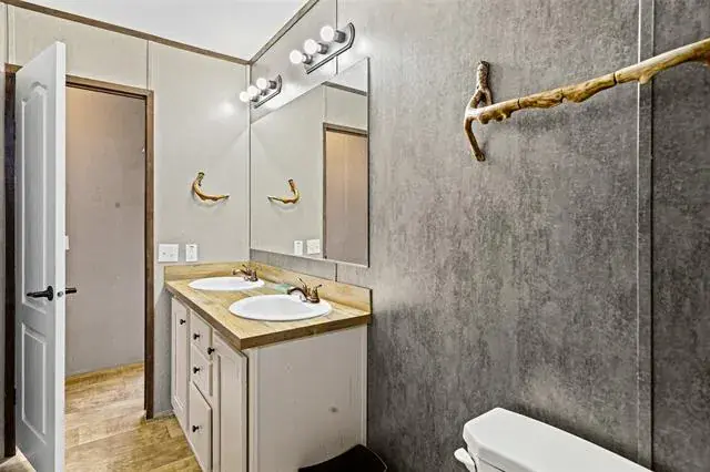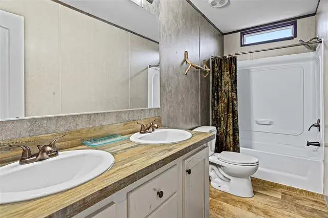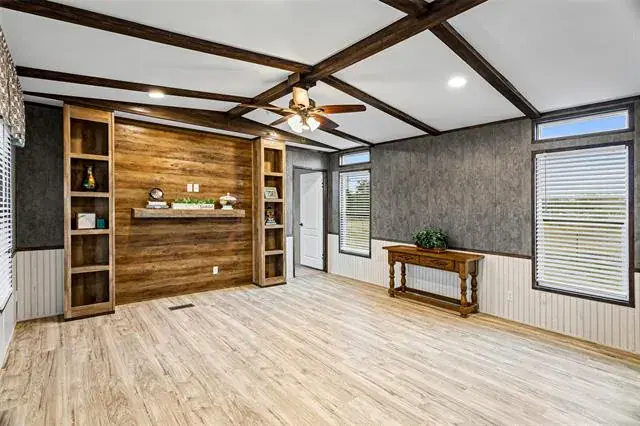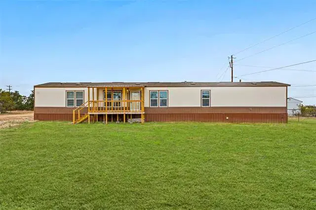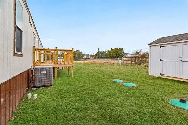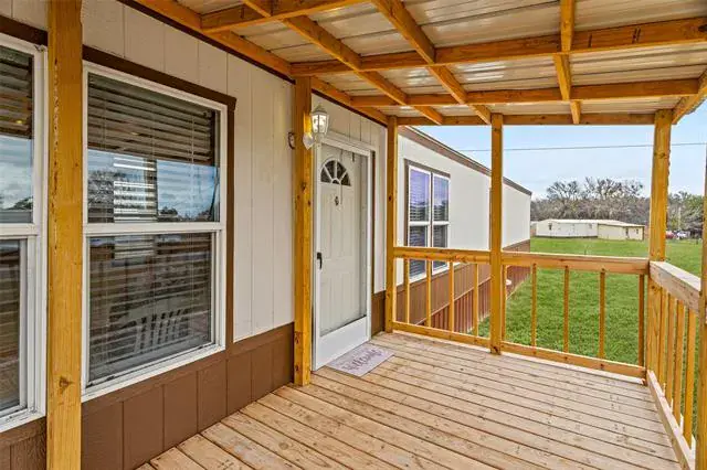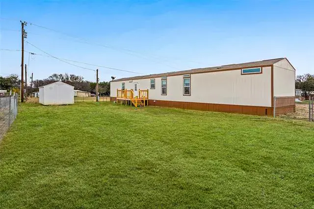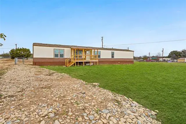 Recently updated single wide manufactured home located on 2 large lots totaling a quarter acre. 2017 model 16X80 Clayton manufactured home featuring 3 full bedrooms, 2 full baths, and 1280 square feet. This home and property has it all and is priced to sell! Brand new aerobic septic system installed in 2025! Inside you will find elegant wood look flooring and new carpet. High ceilings with elegant wood beams and stylish earth tone colors. Large and open living room features built in cabinets, ceiling fan, stylish flooring, and window coverings. Open and roomy kitchen with large island, ample cabinets, and full electric appliances. Stove, dishwasher, refrigerator, and microwave. Large and separate utility room includes washer and dryer. Separate large primary bedroom features ensuite bath, large walk in closet, and ceiling fan. Primary bathroom features double sinks and a custom installed beautiful oversized walk in shower. Opposite side of the home features bedrooms 2 and 3. Each bedroom is roomy with ceiling fans and sizable closets. Bathroom 2 also features 2 sinks and a tub shower combo. Outside this home has a lot to offer. Situated on 2 large lots on a quarter acre, you will enjoy a brand new aerobic septic system, fenced backyard, and an awesome 15′ long X 8′ wide covered front deck that is perfect for sitting and relaxing while also protecting you from the elements. Open back deck also just off the back door for easy access to the backyard. Gravel driveway, storage building in the back yard to hold the lawn equipment, and a very nice large fenced backyard. Coop electric and water offer low cost utilities. This home is conveniently located just off Tin Top Highway with quick access to Granbury and Weatherford.