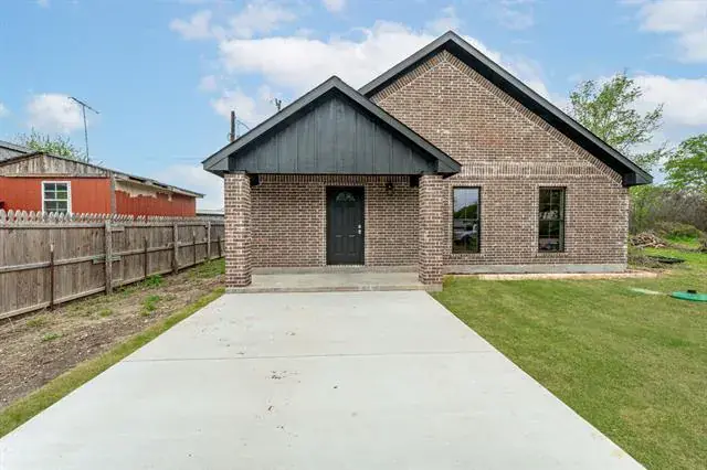 Each bedroom is generously sized with plenty of natural light, while the bathroom showcases modern fixtures and quality finishes. The home’s exterior displays an attractive brick facade with contrasting dark trim, giving it strong curb appeal and a modern farmhouse vibe.