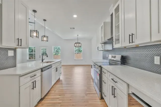 Discover sophisticated contemporary living with this exquisite new construction home, ideally situated just minutes from the serene shores of Granbury Lake. This modern residence showcases an open-concept design, bathed in natural light, creating an inviting atmosphere for both relaxed living and elegant entertaining. The thoughtfully designed floor plan features 3 spacious bedrooms, 2 impeccably appointed bathrooms, and a dedicated home office, perfectly suited for remote work or creative endeavors. The state-of-the-art kitchen, with its premium finishes, seamlessly integrates with the living and dining areas, offering a harmonious blend of style and functionality. Nestled in a tranquil neighborhood, this home provides convenient access to lakefront trails, boating, and local dining, delivering an unparalleled combination of modern luxury and an active outdoor lifestyle.