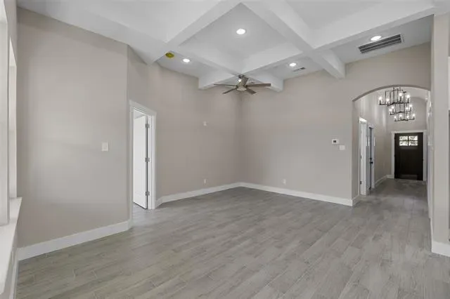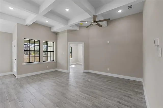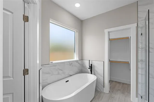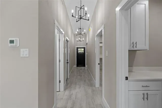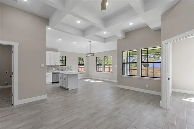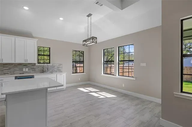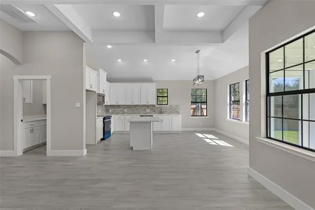 This stunning 3-bedroom, 2-bath home features an open-concept layout with high ceilings, abundant natural light, and seamless flow between the kitchen, dining, and living areas—perfect for entertaining or family gatherings. The chef’s kitchen offers modern finishes and plenty of storage, while the primary suite provides a relaxing retreat with a spa-like bath, soaking tub, separate shower, and spacious walk-in closet. Two stylish secondary bedrooms include custom barn-door closets, and the oversized laundry room offers a sink, generous countertop space, and ample cabinetry. Additional highlights include energy-efficient foam insulation, an insulated garage door with security cameras, and a 2-car garage. Combining comfort, functionality, and designer appeal, this move-in-ready home is waiting for its new owners!