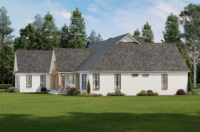 This proposed Wainwright plan spans 3354 sqft. Inside, the thoughtfully crafted layout features 4 spacious beds, 3 full baths, a convenient half bath, along with a dedicated office. A side-loading 3-car garage offers ample storage space. Step into the great room, a perfect gathering space where you can enjoy beautiful views of the rear porch. Culinary enthusiasts will delight in the well-appointed kitchen, which includes a large center island for casual dining, an expansive pantry for all your cooking needs, a wet bar just off the kitchen, &' all the modern amenities. The owner’s suite serves as a luxurious retreat, featuring a vaulted ceiling &' abundant natural light, along with a generous walk-in closet for all your wardrobe essentials. The ensuite bath boasting dual vanities &' a spacious custom walk-in shower. Two additional bedrooms share a well-appointed hall bath with dual vanities and a tiled tub shower. 1 of 4 bedrooms includes an attached full-bath with a walk-in shower. The flex space can be used as an exercise space, game room, or guest lounge. Take advantage of NO PAYMENTS while you build with Zeal Home Builders! Two additional bedrooms share a well-appointed hall bath equipped with dual sinks &' a beautifully tiled tub shower. Outside, you’ll find expansive porches both front and back, solid cedar-stained columns. This plan is packed with high-end features, including a split bedroom design, custom cabinetry, Delta faucets, decorative mirrors, wall-mounted TV outlets, hardline ethernet ports, &' energy-efficient spray foam insulation. Builder spared no expense on your 3-car garage fully finished with can lighting &' smart MyQ side mount garage motor &' auto-lock for extra safety. This home offers the perfect blend of modern living &' rural tranquility. Best of all, with a wide range of options at your disposal, you can tailor it to suit your unique needs. Txt keyword ZHB47 to 88000 for Virtual Tour &' builder details. Directions &' lot map at www.zhb.homes