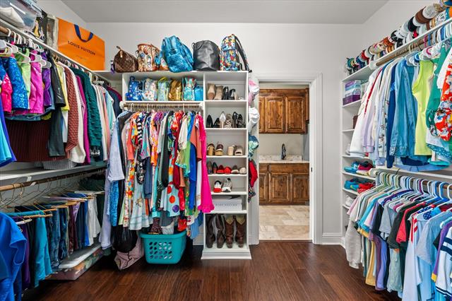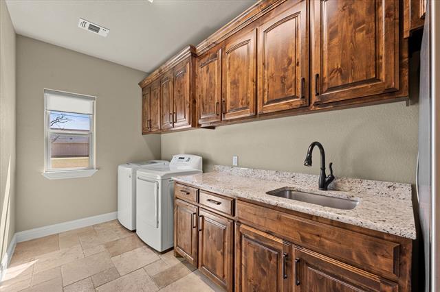 The private primary suite offers a relaxing retreat with the added convenience of direct access from the closet into an oversized laundry room complete with a sink, built-in cabinetry, and a full-size refrigerator. Designed with both functionality and comfort in mind, every detail enhances daily living.