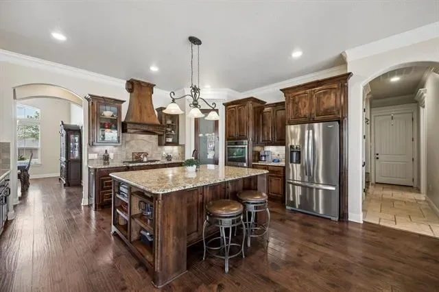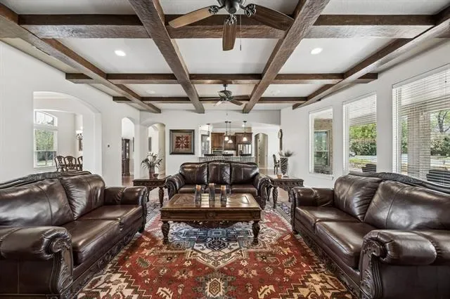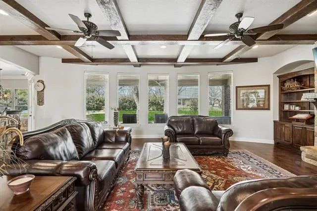 This beautifully appointed home offers an ideal blend of comfort, style, and location within the highly sought-after Pecan Plantation community on the shores of Lake Granbury. Featuring a light-filled, open-concept layout, the spacious living area is designed for both everyday living and entertaining, flowing seamlessly into a massive kitchen with ample cabinetry, expansive counter space, and a huge island that serves as the centerpiece for cooking, gathering, and hosting. The private primary suite provides a relaxing retreat with a spacious bedroom, a well-appointed ensuite bath, and a large walk-in closet. Upstairs, a generous gameroom offers incredible flexibility and could easily function as a second primary suite with its own ensuite bathroom, ideal for guests or multi-generational living. The home also features an incredible office with stunning custom wood built-ins, creating a professional yet warm workspace. Additional bedrooms are well-sized and thoughtfully positioned. Thoughtful finishes, neutral tones, and quality craftsmanship throughout create a warm, move-in-ready atmosphere. Step outside to your own backyard oasis, complete with a large pool featuring a slide—perfect for entertaining, relaxing, and enjoying the Texas summers—along with a spacious covered patio with rocking chairs, ideal for savoring peaceful Texas sunsets. Enjoy tranquil views of a greenbelt just across the street, where deer are often seen, adding to the scenic setting. Located in a premier gated and guarded community, residents of Pecan Plantation enjoy exceptional amenities including access to Lake Granbury, a marina, two golf courses, stables, archery facilities, a clubhouse, swimming pools, parks, walking trails, tennis courts, and two private airstrips, along with convenient on-site shopping, dining, and services. This home offers not just a place to live, but a lifestyle defined by comfort, recreation, and scenic beauty.