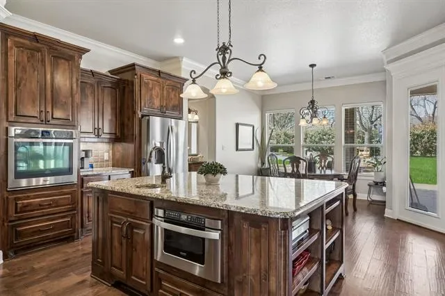 Chandelier, Decorative Lighting, Eat-in Kitchen, Granite Counters, High Speed Internet Available, Kitchen Island, Natural Woodwork, Open Floorplan, Pantry, Vaulted Ceiling(s), Walk- In Closet(s), Second Primary Bedroom