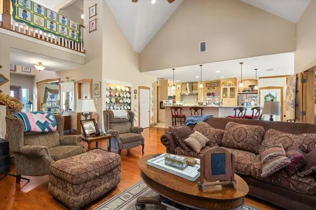 Located on 1.27 acres in the gated golf community of Pecan Plantation, this custom home combines generous space, warm country character, and impressive functionality inside and out.