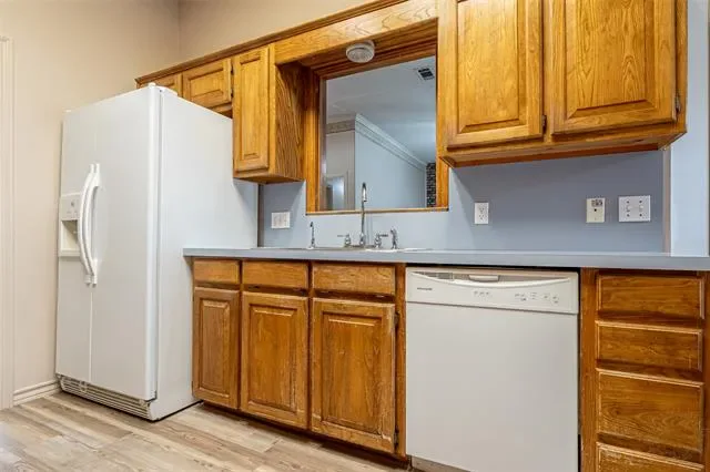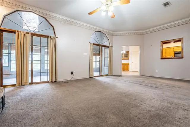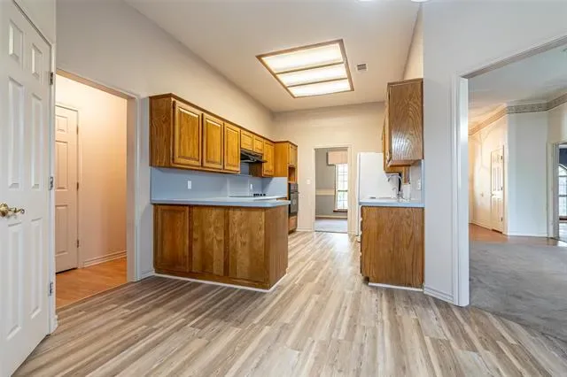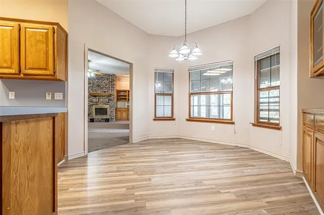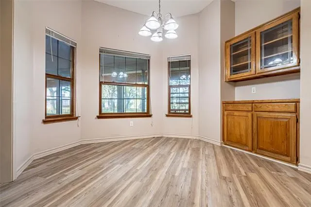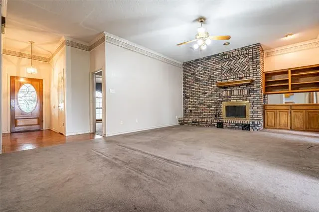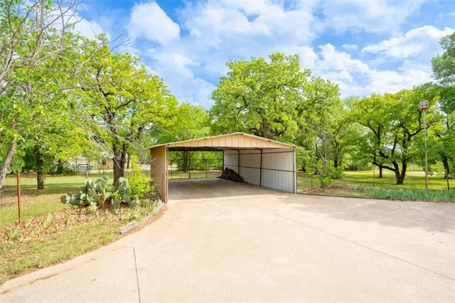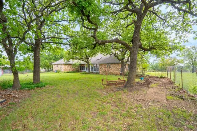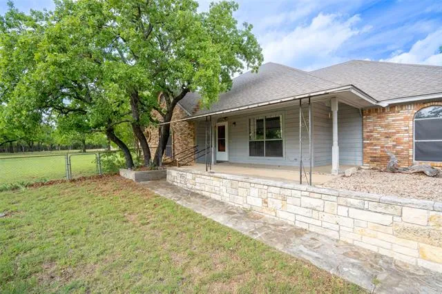 Wide-open Texas living on 3.36 acres! This charming 4-bedroom, 3-bath traditional brick home offers 2,284 sq ft of comfortable, single-story living with the space and freedom rural Hood County is known for. Soaring vaulted ceilings and a dramatic floor-to-ceiling brick wood-burning fireplace with blower make the expansive living room the heart of the home, while built-in cabinetry adds character and function throughout. The primary suite features a private ensuite bath complete with a garden tub, dual vanities, walk-in closet and separate shower. Three additional bedrooms offer generous sizing, and the two other full baths are well-appointed. The kitchen features an electric cooktop and oven, dishwasher, and abundant oak cabinetry. Outside, the possibilities are endless — a large concrete floored workshop, room for RV &' boat parking, a large carport, and an attached 2-car garage provide ample room for equipment, animals, and toys. Perimeter and cross-fencing are already in place, making this property livestock-ready. The beautifully cleared, landscaped grounds back to a peaceful greenbelt with mature trees framing the setting. Call today for a tour!