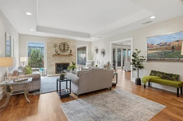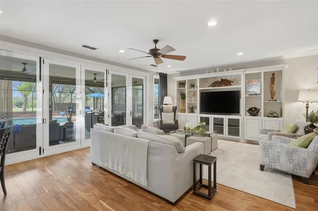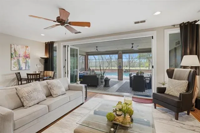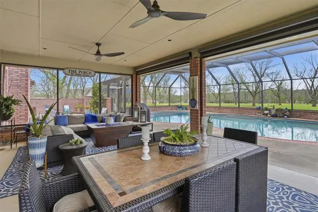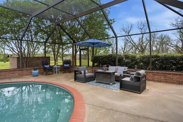 Indoor and outdoor living come together effortlessly with tempered fold-away sliding doors that open to a spacious, Texas-sized outdoor living area shaded by mature trees. Enjoy year-round relaxation in the heated in-ground pool, enclosed within a lanai and enhanced by powered patio screens. The pool system has been recently updated with a new pump, filter, and heater.