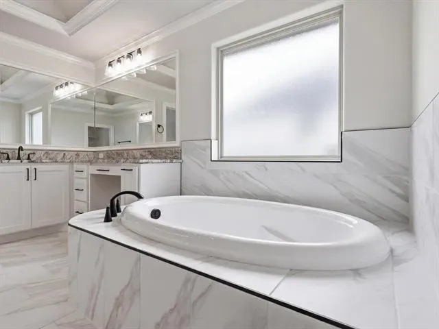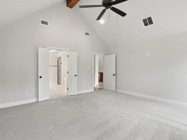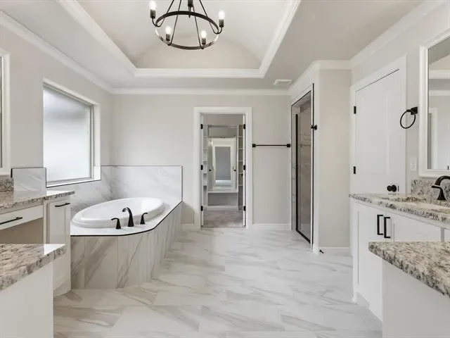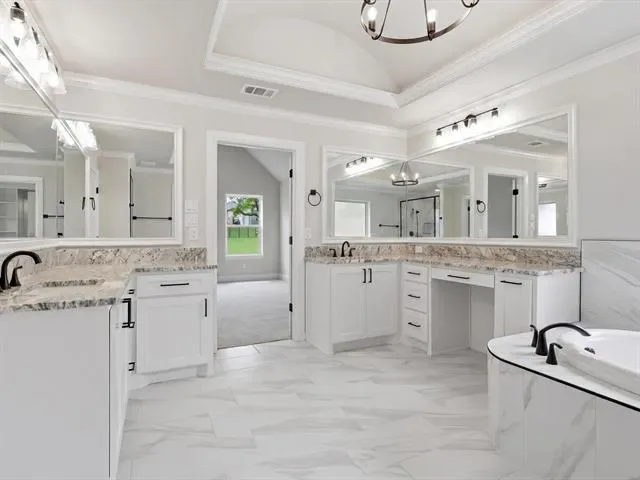 The owner’s suite is your personal escape, featuring a spa-like bathroom with generous counter space, a walk-in shower, soaking tub, and an oversized closet complete with built-in shelving and drawers. A split floor plan offers privacy for both you and your guests, creating a layout that truly works for everyday living.