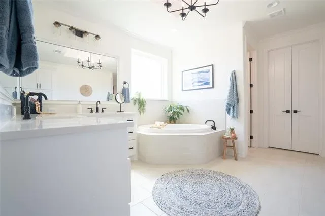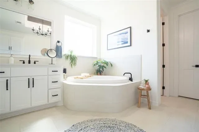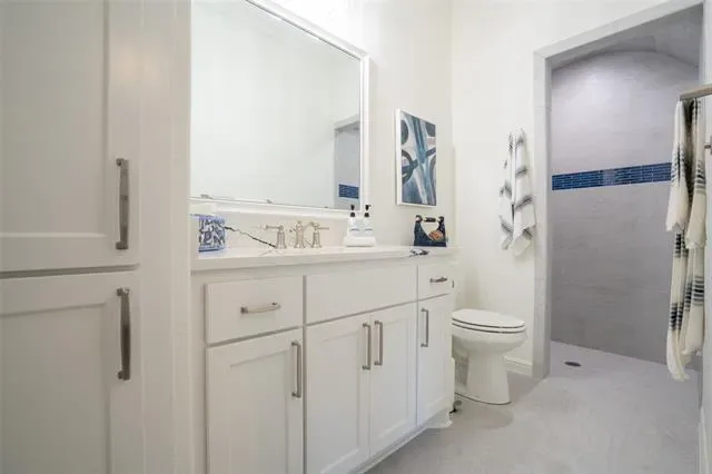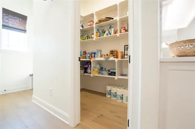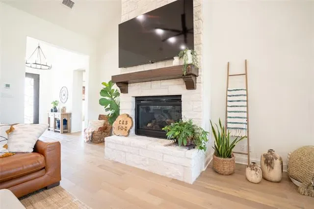 The utility room is designed with functionality in mind, offering a sink, abundant cabinetry, space for an additional refrigerator, and direct access to the primary suite closet for added convenience. Step outside to your own private retreat—an oversized covered patio built for year-round enjoyment, complete with a cozy wood-burning fireplace and gas stub for grilling. This outdoor living space is ideal for relaxing evenings, entertaining guests, or enjoying the peaceful setting. The backyard backs to a greenbelt, providing beautiful views and an added layer of privacy that will remain untouched.
