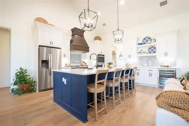 Stunning Couto Homes Magnolia floorplan located in Pecan Plantation POA, offering approximately 2,854 sq ft on over half an acre. This thoughtfully designed home showcases an open-concept layout with a dramatic beamed ceiling in the main living and kitchen areas, complemented by elegant barrel ceilings in the entry and private study—creating a custom, high-end feel throughout. The chef’s kitchen is truly the heart of the home, featuring a large breakfast bar island overlooking the family room, custom cabinetry, double ovens, microwave drawer, and an oversized walk-in pantry—perfect for both everyday living and entertaining. The spacious layout includes a generous family room, game room, dedicated study, and three private ensuite bedrooms, along with a convenient half bath for guests.