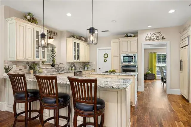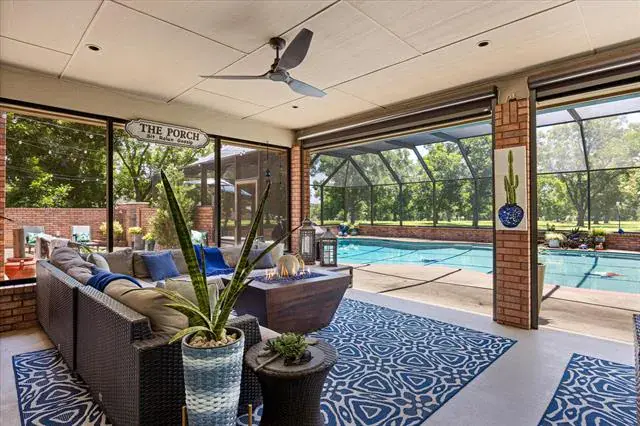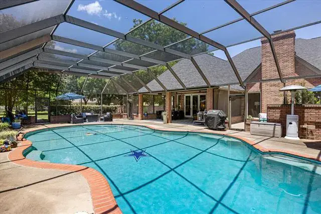 Luxurious Living Amidst Thriving Pecan Orchards in this remarkable estate home. The Pecan Plantation is a guarded subdivision that offers an unrivaled lifestyle amidst the beauty of mature pecan groves and every imaginable amenity. Amenities include a country club, golf, swimming, tennis court, archery, horse stables, restaurant, dog park campgrounds for your guests and so much more. This home is purpose-built for gracious living and entertaining with thoughtfully curated spaces that provide the perfect backdrop for welcoming family and friends or enjoying your own private retreat. The grand foyer sets the tone for the refined interiors and every room speaks of quality and attention to detail. The kitchen is a culinary masterpiece, anchored by custom cabinetry with spice storage pullout beside cooktop, appliance suite, built-in buffet, Jennair downdraft cooktop, built-in GE Monogram refrigerator, dedicated ice maker, and the recessed dimmer control lighting makes preparing and serving meals delightful. Tempered fold-away sliding doors seamlessly connect indoor to the outdoor Texas sized living space looking out to mature trees providing lots of shade. A heated in-ground pool in a lanai enclosure for year-round use. Complete with a new pump, filter, and heater, the pool is encased by a powered patio screen. The 4 bedrooms with ensuites have their own linen closets and built in laundry storage. Office space also has ensuite. Equipped with modern upgrades for peace of mind, comfort and efficiency: 5-ton, 19 SEER Lennox HVAC system, a new 50-gallon hot water heater, and upgraded overhead metal garage doors. The roof features upgraded Asphalt Class 4 shingles for superior durability, and a 50-amp power generator stands ready to connect the house for emergency power. Horses are welcome in this equestrian friendly subdivision. Abundant parking to accommodate family and friends. This is a must see!!