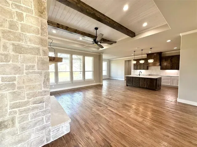 Inside, the home showcases rich red oak hardwood floors, exposed beam details, and shiplap ceiling accents that create a warm, elevated atmosphere throughout the open living spaces. Quality construction and attention to detail are evident at every turn, offering both comfort and durability for everyday living.