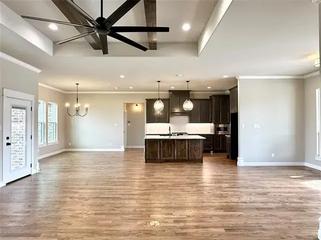Welcome to 3714 Tremont Ln, Granbury, TX 76049' an open-concept home with hand scraped red oak floors, custom cabinets, and a chef-ready kitchen featuring a farm sink, gas range, microwave, and generous workspace. Alder front doors set the tone, leading to a bright living area with a cozy gas fireplace. Energy-minded upgrades include spray-foam insulation and a tankless gas water heater. The split bedroom layout provides a private primary suite, and the oversized 3-car garage offers plenty of storage. Enjoy life inside the Pecan Plantation community—close to amenities, golf, and river access. Move-in ready new construction with quality finishes throughout.