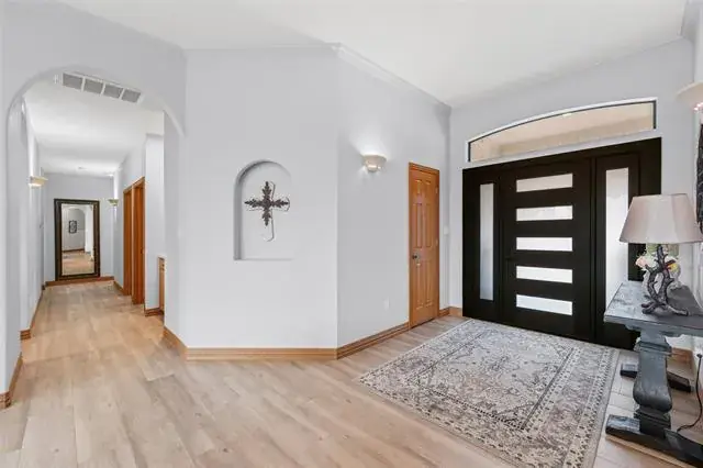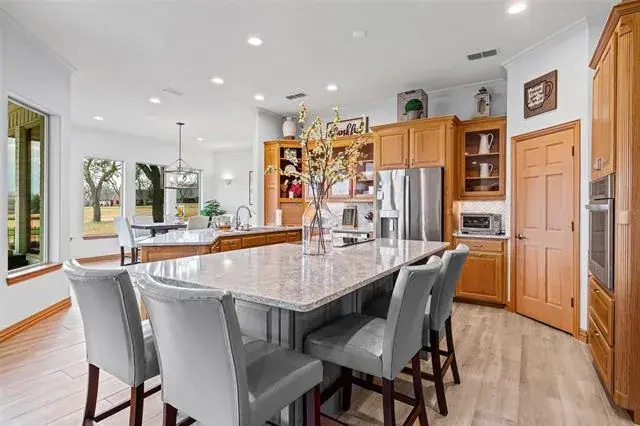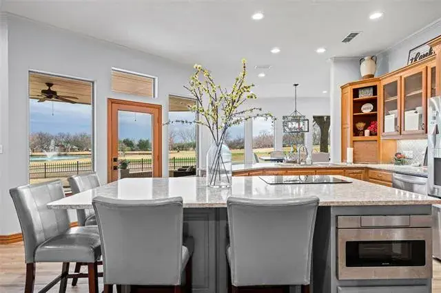 HUGE REDUCTION! WAKE UP EVERY DAY TO STUNNING GOLF COURSE AND WATER VIEWS in the highly desirable golf course community of Pecan Plantation Country Club. Wonderful views from exercise room, den, main living room, kitchen, and breakfast room! Situated on the 7th hole of the Nutcracker Golf Course, the home was custom designed on the lot to avoid direct sun through the windows while enjoying splendid views from every room on the backside of the home. This 4-3 home has been completely and beautifully remodeled inside and out! It is located on one of the nicest streets in Pecan with lots of mature and beautiful trees and wonderful neighbors! Amenities include: open kitchen-living area, dining room well suited for entertaining, stainless steel appliances, gorgeous quartz countertops in kitchen and bathrooms, 2 wet bars, game or workout room, private courtyard off the master suite, specialty lighting, lots of cabinets and storage throughout the home, large back patio on which to enjoy the views, workbench and sink in oversized garage with an 18 ft garage door, circle drive with lots of parking! One bedroom has its own bath! The 4th bedroom is attached to the master bath but could be closed off, or made into an office. This home doesn’t need a thing! Must see to appreciate the splendor of this property! Furnishings negotiable after contract. Truly one of a kind, and the BEST VIEWS in Pecan Plantation!