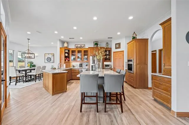 HUGE REDUCTION! WAKE UP EVERY DAY TO STUNNING GOLF COURSE AND WATER VIEWS in the highly desirable golf course community of Pecan Plantation Country Club. Wonderful views from exercise room, den, main living room, kitchen, and breakfast room! Situated on the 7th hole of the Nutcracker Golf Course, the home was custom designed on the lot to avoid direct sun through the windows while enjoying splendid views from every room on the backside of the home. This 4-3 home has been completely and beautifully remodeled inside and out! It is located on one of the nicest streets in Pecan with lots of mature and beautiful trees and wonderful neighbors! Amenities include: open kitchen-living area, dining room well suited for entertaining, stainless steel appliances, gorgeous quartz countertops in kitchen and bathrooms, 2 wet bars, game or workout room, private courtyard off the master suite, specialty lighting, lots of cabinets and storage throughout the home, large back patio on which to enjoy the views, workbench and sink in oversized garage with an 18 ft garage door, circle drive with lots of parking! One bedroom has its own bath! The 4th bedroom is attached to the master bath but could be closed off, or made into an office. This home doesn’t need a thing! Must see to appreciate the splendor of this property! Furnishings negotiable after contract. Truly one of a kind, and the BEST VIEWS in Pecan Plantation!
