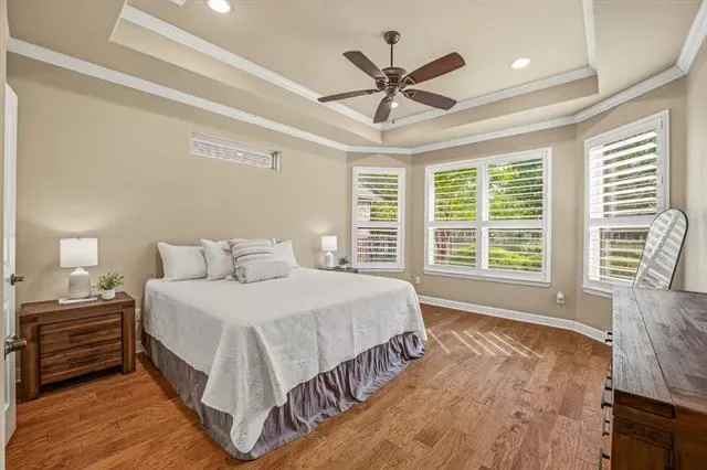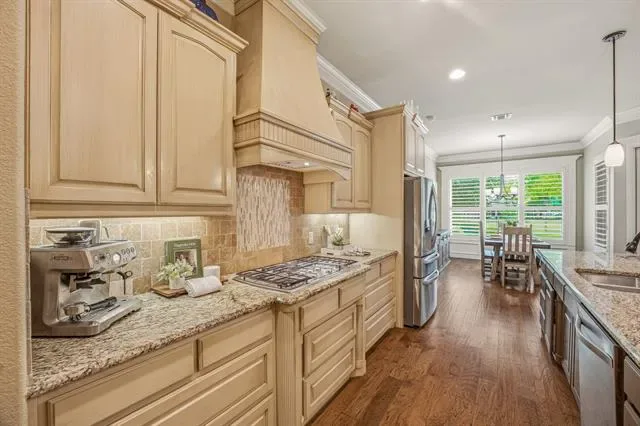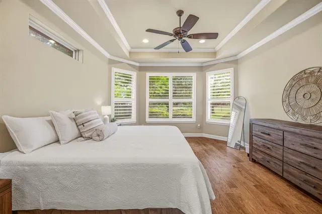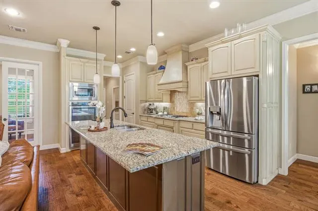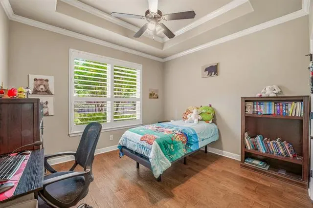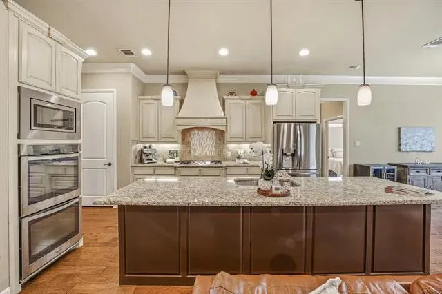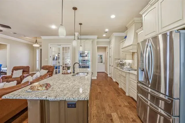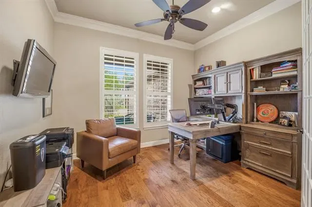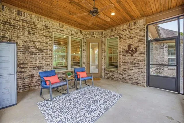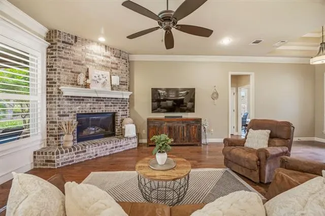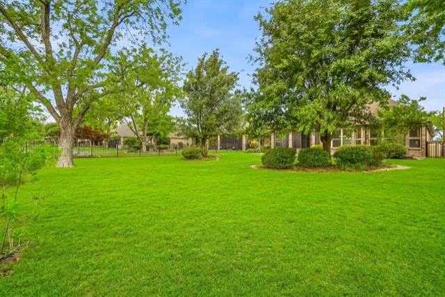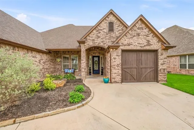 Enjoy living in the gated community of Pecan Plantation, with peaceful fairway views in both the front &' backyards. Refined living in this beautifully designed 3-bedroom, 2-bath home with a dedicated office, perfectly positioned on the Nutcracker Golf Course. From the moment you arrive, the stunning iron front door sets the tone for the quality and character found throughout. Inside, rich wood flooring flows through the main living areas, complemented by crown molding, custom cabinetry, &' a warm, inviting color palette. The open-concept layout is ideal for both everyday living and entertaining. The kitchen overlooks the living room and golf course beyond. The kitchen is a standout feature, offering granite countertops stainless steel appliances, gas cooktop, double ovens, microwave, refrigerator, pantry, and an oversized island perfect for gathering. A beautifully vent hood, designer backsplash &' pendant lighting add a custom touch, while the living area is anchored by a cozy electric fireplace &' filled with natural light. The spacious primary suite provides a private retreat with a large ensuite bath featuring dual sinks, a soaking tub, a walk-in shower, and generous storage. Secondary bedrooms and a dedicated office offer flexibility for guests, hobbies, or working from home. Step outside to the enclosed back porch ideal for year-round enjoyment—overlooking the golf course, along with a low-maintenance yard. You can irrigate your lawn from the Pecan Orchard for a minimum of $15 month. Additional highlights include a 2-car garage plus golf cart garage and walk-up attic access for convenient storage. Many amenities to enjoy including two golf courses, clubhouse, 2-pools, parks with Brazos River access, walking trails, playground, dog park, sports fields, grocery store, dining, medical clinic, veterinarian, Ace Hardware, car wash, gas station, lake access with a marina, RV park, archery, community garden, 2 air strips, hotel at clubhouse, tennis &' even pickle ball!