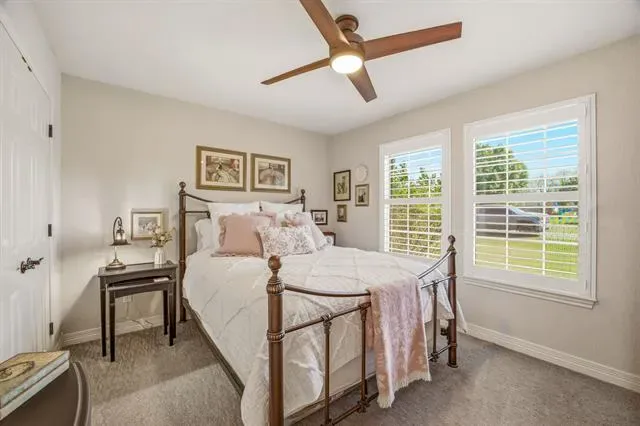 Nestled on the Nutcracker Golf Course in sought-after Pecan Plantation, this beautifully maintained 3-bedroom, 2-bath home sits on Hole #2 in a quiet cul-de-sac, offering peaceful surroundings and fairway views right from your backyard. Inside, rich wood flooring flows throughout the main living areas, complemented by abundant natural light and a layout designed for both comfort and functionality. The inviting living room features large windows that frame the outdoor views and create a seamless connection to the golf course setting. The kitchen is both timeless and functional, featuring white cabinetry, granite countertops, stainless steel appliances, and generous prep space. The counters make it ideal for cooking and gathering, while the dining area adds charm with updated lighting. The split-bedroom floor plan provides privacy, with a spacious primary suite tucked away from secondary bedrooms. The primary bath includes dual vanities, a soaking tub, and separate shower. Secondary bedrooms are well-sized and versatile for guests or a home office. Additional highlights include a dedicated laundry room, walk-in pantry, and ample storage throughout. Step outside to the screened-in back patio—one of the home’s standout features—perfect for year-round outdoor living while enjoying golf course views. The fenced backyard adds both privacy and function. A 2-car garage plus a separate golf cart garage enhances convenience and lifestyle in this amenity-rich community. Move-in ready and thoughtfully maintained, this home offers comfort, quality, and relaxed golf course living in one of Granbury’s most established neighborhoods.
