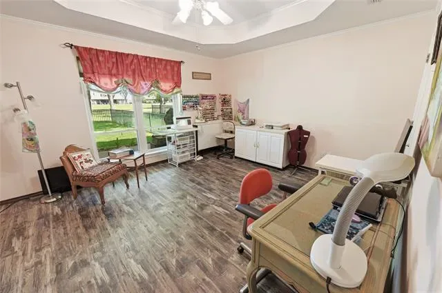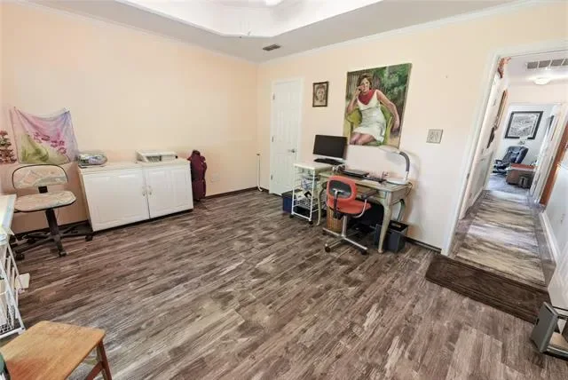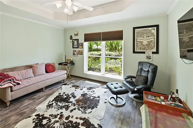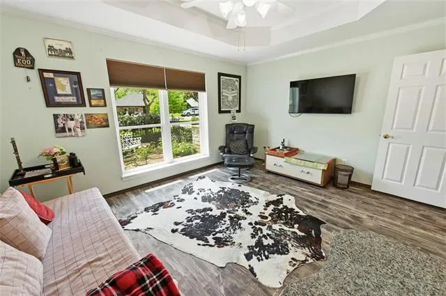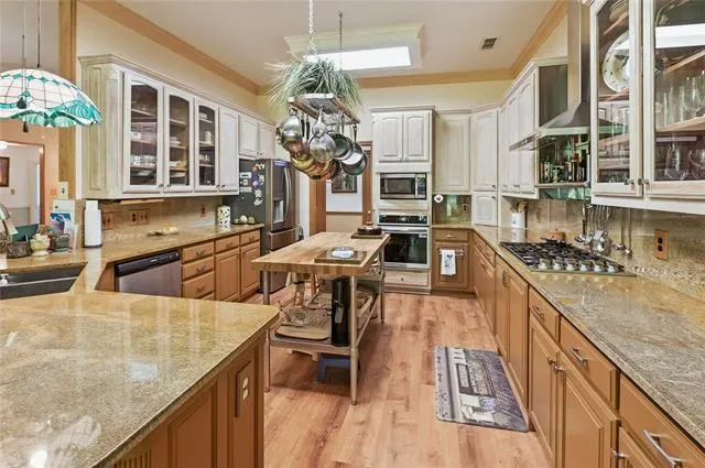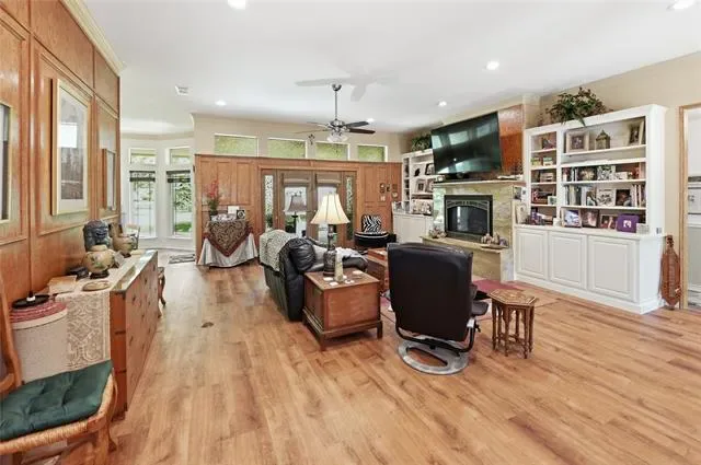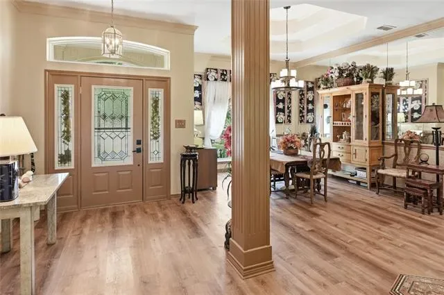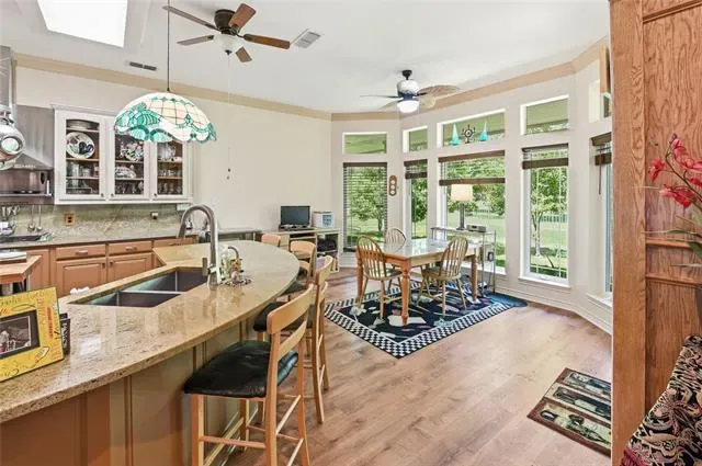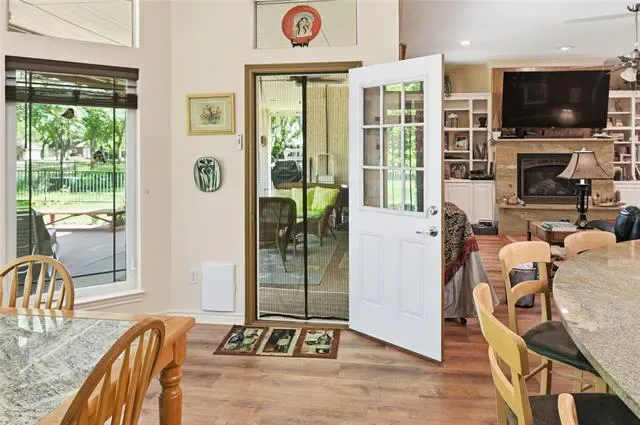 Inside, the home delivers a well-designed layout with generous living space, strong natural flow, and the comfort buyers expect in an established Pecan Plantation property. The formal dining room, large living area with fireplace, open kitchen, and bright breakfast dining area create an inviting central space for daily living and entertaining. Detailed molding and paneling add warmth and character, while the overall layout provides both openness and definition.