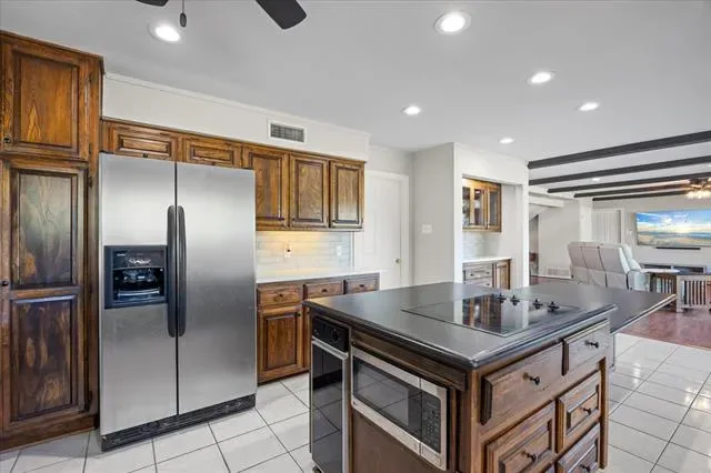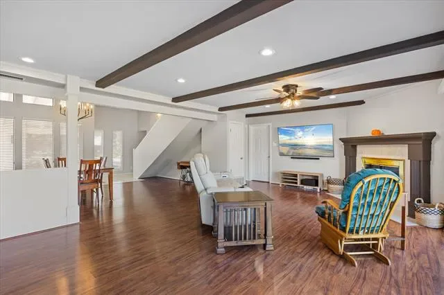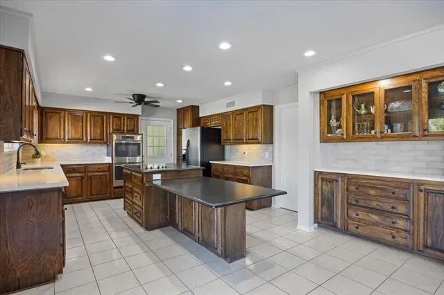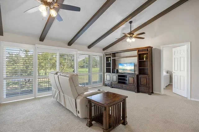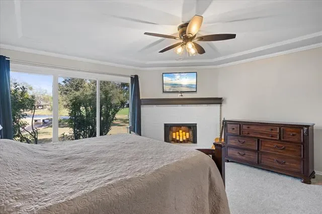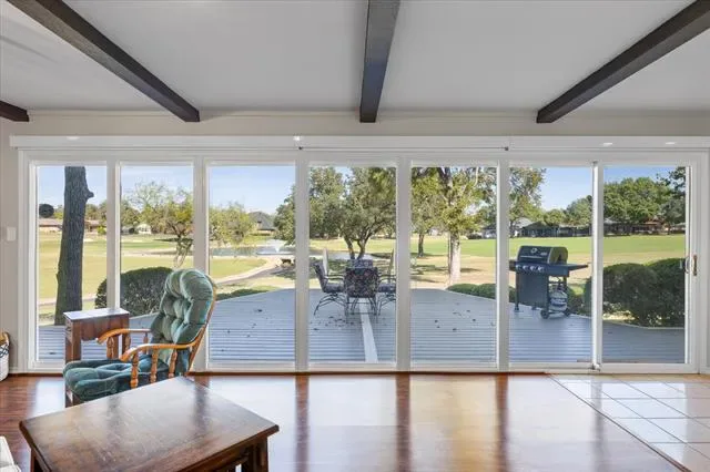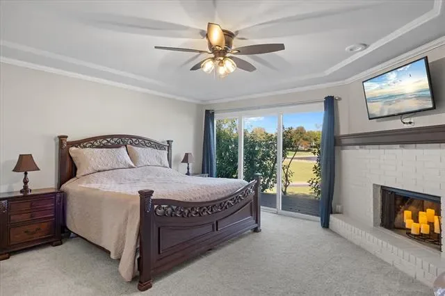 Located on the 17th green of the beautiful Pecan Plantation golf course, this stunning contemporary mid century modern home is ready for your next adventure. Freshly painted throughout with tons of recent updates like quartz counters, trendy new backsplash, ceilings fans, fixtures and more make this 3 bedroom, 3 bath and 2 living room home THE ONE!. No parking issues here! Located on a cul de sac street, this home has a huge circle drive to fit several cars as well as a port-cochere. Garage features 2 car parking, golf cart space with its own access and a small shop area inside. Take in the water feature and golf course views from the outside deck or from the open concept main level living WALL of WINDOWS with no privacy issues thanks to the custom REMOTE CONTROL BLINDS! The master ensuite is located on the 1st floor with WB fireplace, golf and water views and literally a ROOM SIZED walk in closet. Upstairs you will find an Extra family room with plantation shutters, 2 bedrooms, balcony and full bath. Hidden HUGE storage access in second bedroom closet-be sure to check it out. Large main floor laundry room just off the garage even has a shower. Super close to the Country Club and other Pecan amenities including Grocery, Fitness Club, Swimming Pools, Restaurant, Pharmacy, Bank, Medical, Beach, Stables, Walking trails and more! 2 gated & guarded entrances. Come make new friends in a community with tons of activities for all. Enjoy your destination life in Pecan Plantation!