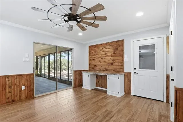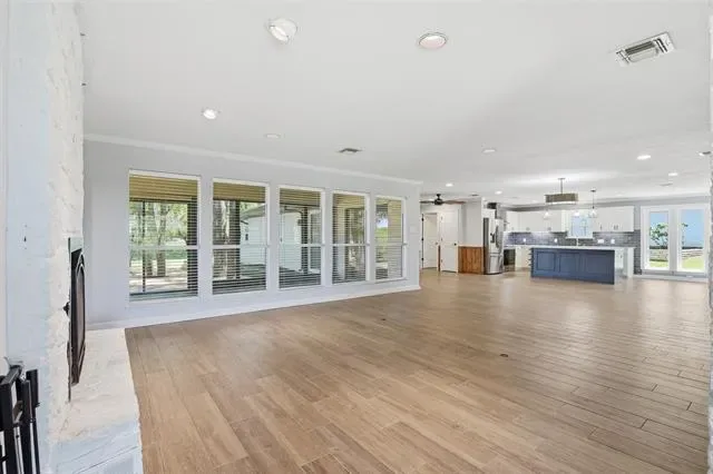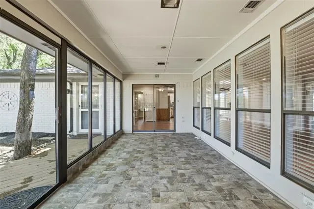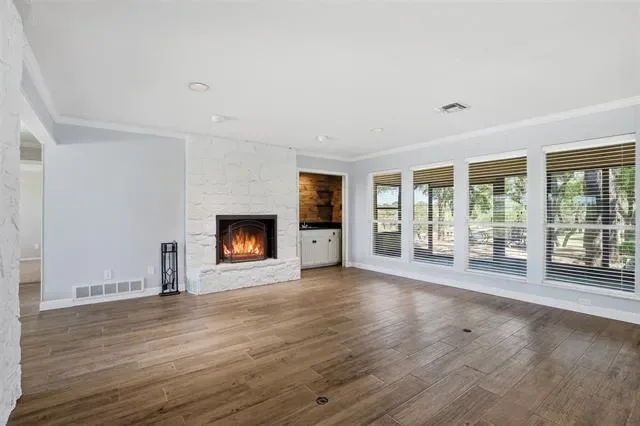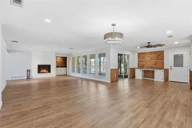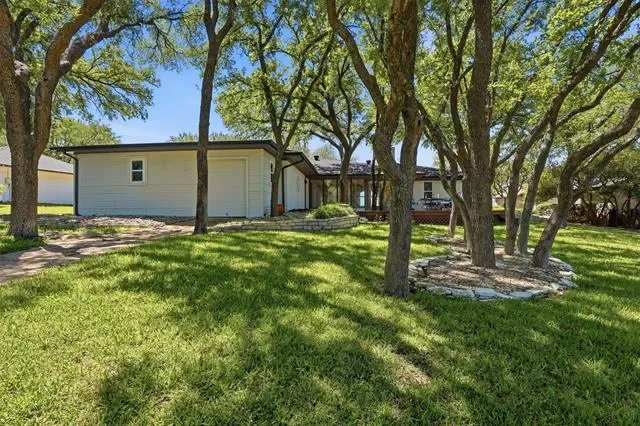 Stunning curb appeal and perfectly situated on the 8th hole of Pecan Plantation Golf Course, this beautifully updated 3-bedroom, 2.5-bath home blends modern upgrades with timeless character. The spacious open-concept floor plan features a wood-burning fireplace and expansive windows that showcase picturesque golf course views. The updated kitchen boasts modern finishes, a large island, and ample space for entertaining. A convenient half bath is ideal for guests. Enjoy year-round relaxation in the sunroom, overlooking a shaded backyard deck—perfect for outdoor living. A dedicated workspace adds flexibility for remote work or hobbies. The primary suite is generously sized and features a fully updated ensuite bath with a walk-in shower and walk-in closet. Secondary bedrooms are also well-sized with ample storage and access to a full bathroom. A three-car garage provides plenty of room for vehicles, storage, and a golf cart. Located in the highly sought-after gated community of Pecan Plantation, residents enjoy resort-style amenities including two championship golf courses, clubhouses with dining, a marina on the Brazos River, riverfront parks, pools, tennis and pickleball courts, fitness facilities, and walking trails. Additional features include a private airpark, equestrian facilities, and convenient on-site services such as a grocery store, pharmacy, bank, and medical offices. With 24-hour security, private EMS and fire services, and an active community lifestyle, Pecan Plantation offers an exceptional place to call home.