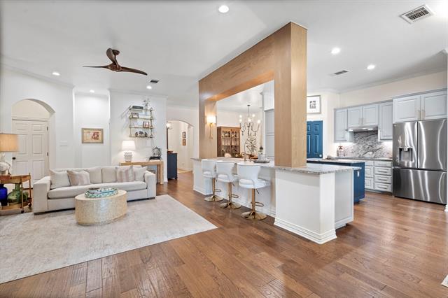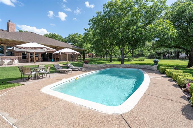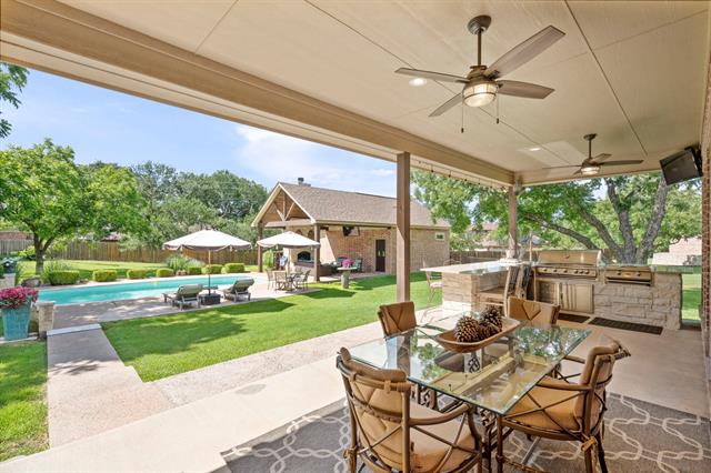 The definition of Open Concept and Outdoor Living! Come see this one of kind property in the gated community of Pecan Plantation, Granbury with 4 bedroom, 3.5 bath, 2 dining, 2 living, plus a dedicated study area. This home could easily be used for multi-generational living, as the primary and guest bedrooms are separate from the secluded TV room flanked by two bedrooms and a bath; a separate wing with the close of a door! The heartbeat of the home features a designer remodeled kitchen with Kitchenaid Cafe appliances, Blue Dunes leathered granite, white oak columns, a Blanco sink and Brizo plumbing accessories. Just steps away, the Outdoor Kitchen will keep the Grill Master busy year round with a Blaze 5-burner grill, Cal-Fire griddle and a Danby refrigerator for keeping beverages cold. The L-shaped Giallo Cream outdoor granite island seats up to 12, so everyone is always welcome! Not to be out done, the Pool’s Outdoor Living is the perfect spot after a dip in the pool to catch the game under the big a$$ fan or warm up around the Austin Cream Stone fireplace. Need to the throw the ball or start a garden, with the affordable Orchard Irrigation and FENCED pie-shaped backyard, there is MORE than enough room to stretch out, or just roam the yard. Inside, the wood floors are highly durable and compliment the new carpet. The 2025 Class 4 Roof is impact resistant, eligible for insurance premium discounts, an investment. Last but not least, FIVE garage spaces and an additional walk-in attic space. Ready to venture into the neighborhood? The Country Club feel with it’s vast amenities won’t disappoint! With a proposed third golf course, pickleball and tennis courts, two community pools and an Activity Center, it’s easy to stay active. There’s also, a Marina, an Equestrian Center, RV park, camp ground, two airstrips, a grocery store, gas station, drug store, pizzeria, Ace Hardware, Country Club activities and multiple restaurants. There truly is something for everyone!