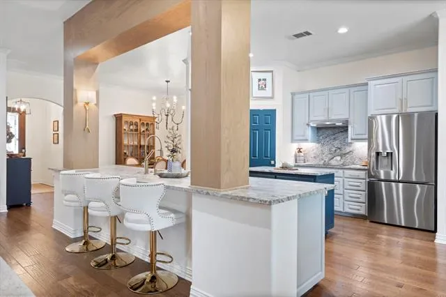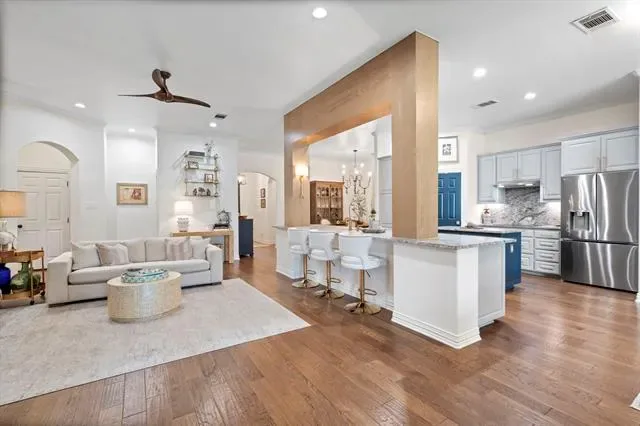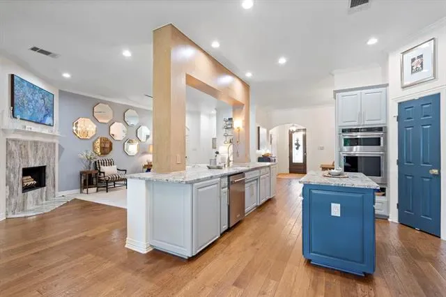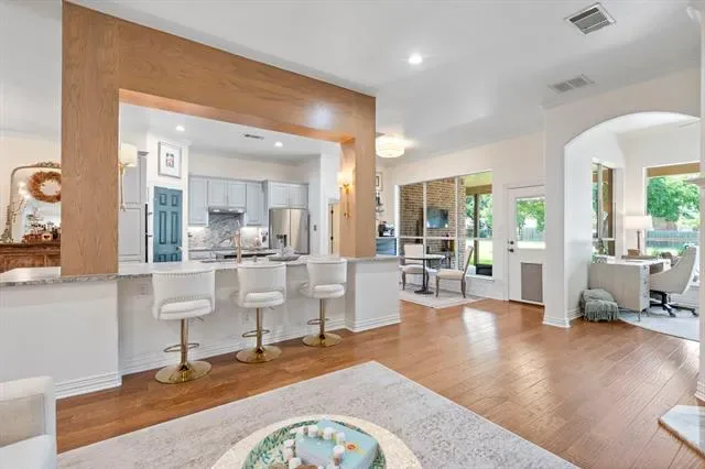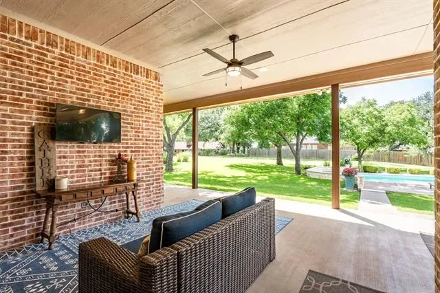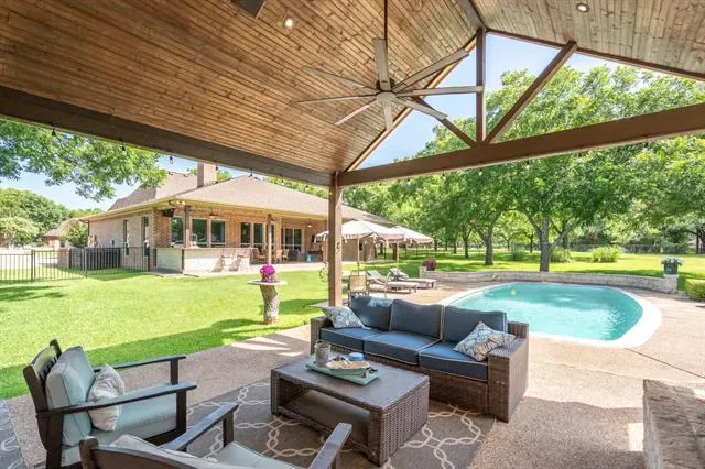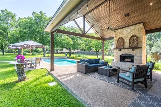 The definition of Open Concept and Outdoor Living! Come see this one of kind property in the gated community of Pecan Plantation, Granbury with 4 bedroom, 3.5 bath, 2 dining, 2 living, plus a dedicated study area. This home could easily be used for multi-generational living, as the primary and guest bedrooms are separate from the secluded TV room flanked by two bedrooms and a bath; a separate wing with the close of a door! The heartbeat of the home features a designer remodeled kitchen with Kitchenaid Cafe appliances, Blue Dunes leathered granite, white oak columns, a Blanco sink and Brizo plumbing accessories. Just steps away, the Outdoor Kitchen will keep the Grill Master busy year round with a Blaze 5-burner grill, Cal-Fire griddle and a Danby refrigerator for keeping beverages cold. The L-shaped Giallo Cream outdoor granite island seats up to 12, so everyone is always welcome! Not to be out done, the Pool’s Outdoor Living is the perfect spot after a dip in the pool to catch the game under the big a$$ fan or warm up around the Austin Cream Stone fireplace. Need to the throw the ball or start a garden, with the affordable Orchard Irrigation and FENCED pie-shaped backyard, there is MORE than enough room to stretch out, or just roam the yard. Inside, the wood floors are highly durable and compliment the new carpet. The 2025 Class 4 Roof is impact resistant, eligible for insurance premium discounts, an investment. Last but not least, FIVE garage spaces and an additional walk-in attic space. Ready to venture into the neighborhood? The Country Club feel with it’s vast amenities won’t disappoint! With a proposed third golf course, pickleball and tennis courts, two community pools and an Activity Center, it’s easy to stay active. There’s also, a Marina, an Equestrian Center, RV park, camp ground, two airstrips, a grocery store, gas station, drug store, pizzeria, Ace Hardware, Country Club activities and multiple restaurants. There truly is something for everyone!
