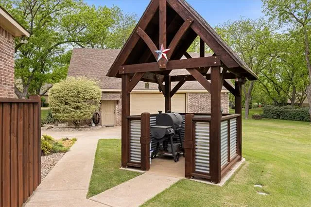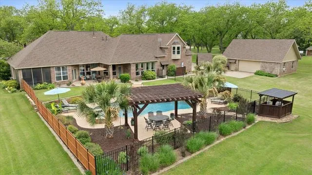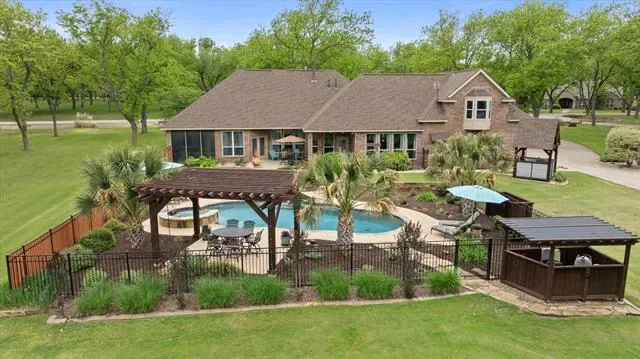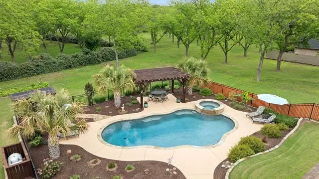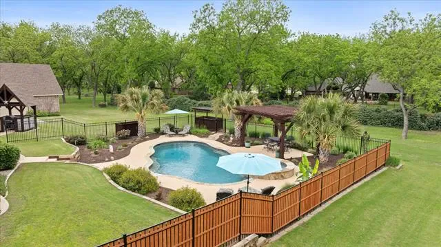 Hurry…this beautiful estate home in the highly sought after Retreat neighborhood of Pecan Plantation will not last! This impeccably maintained home boasts 4 bedrooms, 3 full bathrooms, 3 living areas, 2 dining areas, plus an office and large laundry room. The kitchen cooktop and the laundry room are double plumbed so you can use electric or gas in those areas. There are 2 bedrooms downstairs and 2 bedrooms upstairs as well as a bonus space that could be a game room, play space, or additional home office. The home was built with steel stud framing, providing increased durable and resistant to fire, wood rot, mold and termites plus offers perfectly straight walls. The Icynene spray foam insulation is eco-friendly and is known for its air-tight, energy efficient benefits that significantly lower utility costs. Roof was replaced in 2024 with a Class 4 shingle, which will provide a discount with most insurance companies. The backyard is private, has a pool and spa, built in 2019 and is enclosed with an aluminum and privacy fence. The property is surrounded by beautiful pecan trees and a lush, manicured lawn. There is a detached shop measuring 28×40, that includes a half bath and loft storage that could be used as a shop or finished out for additional living space and includes a 30-amp plug. The home is located on a quiet cul-de-sac, conveniently close to the front gate of the neighborhood. Pecan Plantation offers many amenities including parks, marina, clubhouse, golf courses, restaurants, air parks, stables, archery range, campground, VFD and 24-7 EMS, medical clinic, pharmacy, veterinarian, grocery store, activity center, pools and tennis. Guard gated community with security. Minutes from the historic Granbury Square on the Fort Worth side of town.