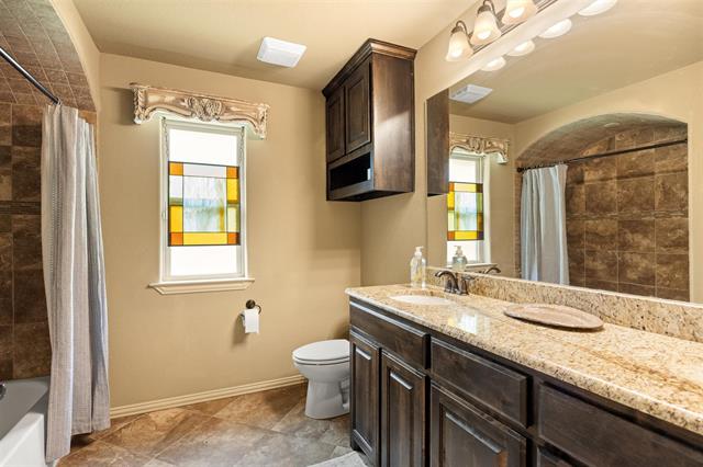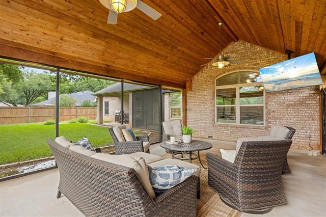 Beautiful, well maintained home built in 2015 is well placed within the highly sought-after gated community of Pecan Plantation. This 4 bedroom, 2 bath home has an open concept floor-plan, split bedrooms, tasteful neutral colors throughout, plantation shutters and a spacious living room with fireplace. Master bath has separate shower & tub, dual sinks and walk-in closets with a split floor-plan design. Kitchen has an island, granite countertops, rich cabinets and a new microwave and dishwasher. The lot boasts beautiful landscaping and an impressive private, covered, screened-in outdoor living space (finished with beautiful, long-lasting cedar planks) perfect for relaxing with your morning coffee or entertaining friends. Centrally located within Pecan Plantation close to both the front and back gates. New Class 4 roof installed summer 2024 as well as a new water heater and garbage disposal. This home is on a corner lot on a quiet cul-de-sac street. Pecan Plantation offers many amenities including parks, marina, clubhouse, golf courses, restaurants, air parks, stables, archery range, campground, VFD and 24-7 EMS, medical clinic, pharmacy, veterinarian, grocery store, activity center, pools and tennis. Guard gated community with security. Minutes from the historic Granbury Square on the Fort Worth side of town.