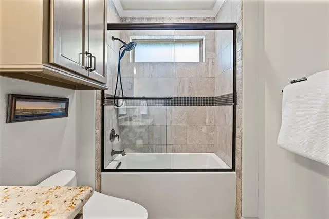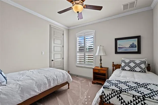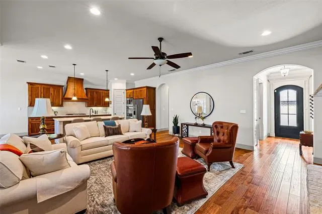 EXCEPTIONALLY NICE 4-bedroom, 2-bath custom-built Hopper home, perfectly situated in the highly sought-after Pecan Plantation golfing community. Spacious floor plan boasts premium finishes throughout — crown molding, hardwood floors, travertine, 8’ doors, central vac, and oversized closets. Plantation shutters on all windows, including garage and outbuilding' exterior uplighting. Gourmet kitchen is equipped with double ovens, KitchenAid appliances, and a 5-burner gas cooktop. Breakfast nook &' bar. Focal point of oversized living room is a handsome stone, gas fireplace. Ensuite for Primary bedroom has his &' hers vanities, garden tub, separate shower, and Toto Washlet toilet. Handy pull down rods in Primary closet that connects to laundry room. 4th bedroom would make a great office. 27 X 17 upstairs Bonus room. This meticulously maintained property features an oversized garage with epoxy floors, LiftMaster garage door opener and a versatile outbuilding, offering both convenience and extra storage. Screened in back patio has tile floors, outlet for TV &' extended concrete pad. Installed in 2024: Tek System metal roof with lifetime warranty, complemented by new gutters and Lennox Elite HVAC with an electronic air purification system. 7-zone sprinkler system. Trek privacy fence in encompasses a pretty landscaped backyard. This home blends luxury, functionality, and prime location—don’t miss the chance to own a piece of Pecan Plantation’s finest! Close to Pecan amenities, including Marina, clubhouse, golf courses, stables, tennis, pickleball, community pool, Fire &' EMS and more. Just minutes from Lake Granbury, the Hood County Square, offering quaint shops, restaurants and weekend activities. An hour from Ft. Worth.