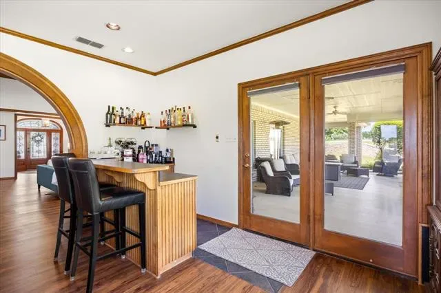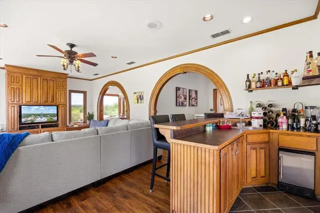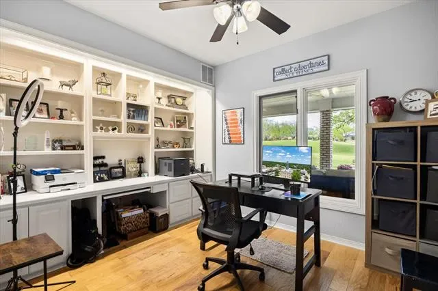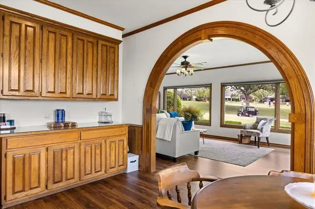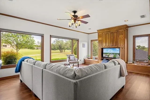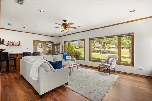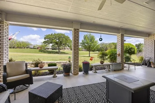 Beautiful golf course home in the sought-after community of Pecan Plantation, perfectly positioned on the 7th green. This 3-bedroom, 2.5-bath home offers 2,487 square feet with a 2-car garage plus dedicated golf cart space—ideal for enjoying the golf course lifestyle. Step inside to find updated luxury vinyl plank wood-look flooring, fresh interior paint, and an updated kitchen designed for both everyday living and entertaining. Bathrooms feature new countertops and fixtures, while a recently installed roof adds peace of mind. The true showstopper is the wall of picture windows stretching across the back of the home, flooding the living areas with natural light, and showcasing beautiful golf course views. The oversized outdoor living area provides the perfect setting for relaxing evenings, entertaining guests, or watching play on the green. Most furniture and appliances are available for purchase, making this an excellent opportunity for a move-in-ready or partially furnished home in one of Granbury’s most desirable golf course communities.