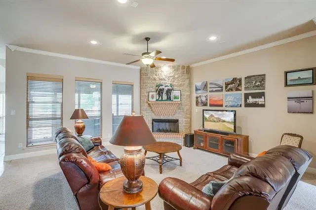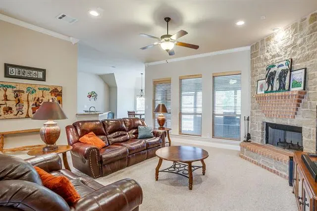 Fantastic, well-built home in the highly desirable community of Pecan Plantation! Beautiful brick &' stone home features oversized living room anchored by a striking upgraded stone fireplace, creating a warm and inviting focal point. Spacious floor plan offers 3 bedrooms &' 2 bathrooms with generously sized rooms throughout. Office would be a 4th bedroom. Kitchen is designed for both everyday living &' entertaining, featuring an island, upgraded granite countertops, abundant cabinetry, breakfast nook, separate formal dining room. Upgraded tile flooring runs throughout the home, and ample storage includes large closets &' spacious utility room. Split-bedroom layout provides privacy, with a comfortable primary suite offering a jetted tub, separate shower, dual vanities, &' walk-in closet. Gently lived in &' meticulously maintained. Updates include Class 4 impact resistant roof 2024, NEW gutters &' downspouts, NEW sod in the back &' side yard with contouring for improved drainage when the patio was added 2024, HVAC outdoor unit replaced 2021, HVAC air handler replaced 2022, Updated kitchen faucet 2026, Microwave replaced 2026, Septic recently pumped, Risers added. Additional features include a sprinkler system, excellent energy efficiency, &' great location within one of Granbury’s most sought-after communities. A wonderful home that truly checks all the boxes. must see! Search YouTube ''Everything about Pecan Plantation Rebecca Van Buren'' to learn about our amazing community.
