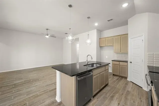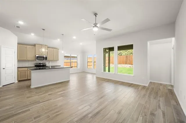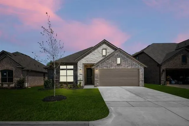 MLS# 21177386 – Built by Risewell Homes – Ready Now! ~ This charming single-story home features a practical and inviting layout designed for comfortable everyday living. The open family room sits at the center of the home and flows effortlessly into the kitchen and breakfast nook, creating a bright space ideal for gatherings and casual entertainment. The kitchen offers ample counter space, a functional layout, and easy access to the pantry and utility room. The private owner’s suite is thoughtfully positioned for privacy and includes a spacious walk-in closet and a well-appointed en-suite bath with dual vanities, a soaking tub, and a separate shower. Two additional bedrooms are located on the opposite side of the home and share a full bath, making the layout ideal for family members or guests. A welcoming foyer, covered front porch, and a two-car garage complete this well-balanced home, perfectly suited for relaxed Granbury living.