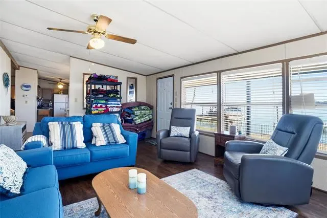 Motivated seller! Fantastically maintained LAKEFRONT property on Lake Granbury. Make memories that last a lifetime! This 3-bedrm, 2 bathroom retreat, perfectly positioned directly on the MAIN BODY of Lake Granbury. If you’re looking for big water views and deep water access, this is the one! The interior is designed for both relaxation and entertaining, featuring two living areas that provide ample space for guests to spread out. A cozy wood burning fireplace offers the perfect focal point for chilly evenings after a day on the water. The eat in kitchen complete with space for a table & breakfast bar seating, & flows seamlessly into the two main living spaces, making morning coffee with a view a true luxury. Ensuite owners retreat & good size secondary bedrooms for room to spread out & have guests stay! The outdoor amenities truly set this property apart. Step out onto the spacious covered deck, an ideal vantage point for shaded afternoons, sunset evenings or late night stargazing over the open water. This home is fully fenced offering a secure environment for pets or play. Convenient storage shed for all your lake gear and fishing tackle. Parking is a breeze with the gated double carport, providing protection for our vehicles and toys. Water enthusiasts will fall in love with the private dock which was added in 2022 & 23 and ready for you to add your canopy and lift. Just out your back door is immediate access to boating, wakeboarding, fishing, floating, and sunset cruises. Nestled in a wonderful established neighborhood you’ll enjoy the peace of a private oasis alongside fantastic community amenities. Whether looking for a full time residence or a weekend getaway, this home offers the perfect setting to make great memories on the Lake. Don’t miss your chance to own a piece of Lake Granbury’s most sought after shoreline! Boat and home furnishings are negotiable. Home is Certified Manufactured home. Please see Offer Guidelines in Transaction Desk.