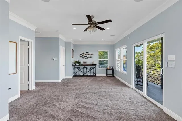 The rear of the property offers a large grassy yard along with a covered area that can be used for outdoor living or covered parking. With its distinctive curb appeal, lake views, and prime location, this home works equally well as a private oasis or a strong investment opportunity for short term rentals.