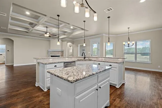 Decorative Lighting, Double Vanity, Eat-in Kitchen, Granite Counters, Kitchen Island, Open Floorplan, Pantry, Walk- In Closet(s)