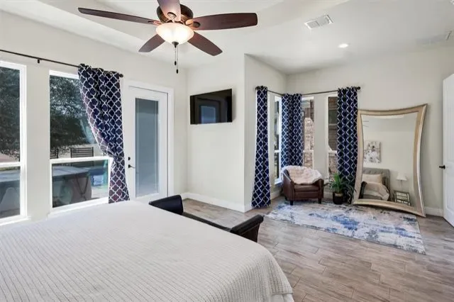 Step outside to your own resort-style oasis, where a sparkling pool controlled electronically by a phone app, is framed by mature trees that create a stunning natural backdrop while ensuring exceptional privacy. A covered porch with an outdoor grilling area along with a stone fire pit that invites year-round entertaining and relaxed evenings under the Texas sky.