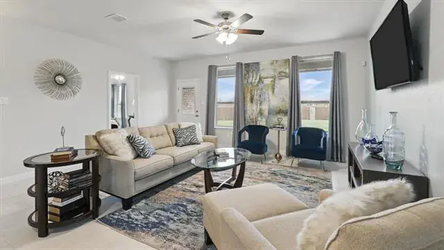 Beautiful new D.R. Horton home in the Saratoga community located in Granbury and Granbury ISD! This beautifully designed single-story Kennedy Floorplan, Elevation H, with an estimated Spring completion, offers 4 bedrooms, 2.5 bathrooms, and a 2-car garage with an open-concept layout that seamlessly connects the family room, dining area, and modern kitchen for everyday comfort and functionality. The chef-inspired kitchen boasts quartz countertops, 36” upper cabinets with crown molding, stainless steel appliances, electric range, stainless steel drop-in sink, a large center island, and a walk-in pantry—providing the ideal space for cooking, storage, and entertaining. The private primary suite includes an en-suite bath with dual quartz vanities, a 5-foot oversized shower, and a walk-in closet located off the bathroom. Quartz vanity tops are also featured in the secondary bathrooms, while luxury vinyl plank flooring is installed throughout all main areas and wet zones for both durability and style. Built with energy-efficient construction and equipped with America’s Smart Home Technology, this home also includes exterior upgrades such as a covered back patio, full sod, sprinkler system, privacy fencing, and professional landscaping. Residents of Saratoga can enjoy two parks within the community. The neighborhood is well-connected with nearby highways, such as Highway 377 and Saratoga Blvd. A short drive takes you to the scenic Lake Granbury, where outdoor enthusiasts can enjoy boating, fishing, and relaxing at Granbury City Beach Park. The community also offers convenient access to various restaurants, shopping centers like HEB, and local attractions like Harbor Lakes Golf Club and Motor Sport Ranch.