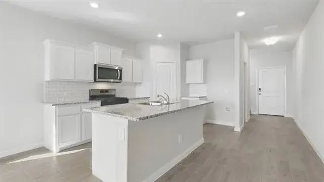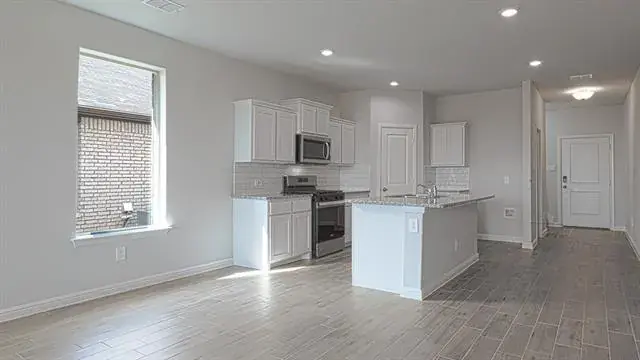 Beautiful new D.R. Horton home in the Saratoga community located in Granbury and Granbury ISD! The single-story Macon Floorplan, Elevation G, with a quick estimated Winter completion, offers 4 bedrooms, 2 bathrooms, and a 2-car garage with a bright open-concept layout that blends the kitchen, dining, and family room-perfect for gatherings and relaxed living. The kitchen includes quartz countertops, 36” upper cabinets with crown molding, stainless steel appliances, electric range, stainless steel drop-in sink, center island, and walk-in pantry. The primary suite provides an en-suite bath with dual quartz vanities, a 5-foot oversized shower, and a walk-in closet located off the bathroom. The secondary bathroom includes a quartz vanity top, while luxury vinyl plank flooring flows through the main areas and wet zones. Energy-efficient construction and America’s Smart Home Technology are included, along with covered back patio, full sod, sprinkler system, privacy fencing, and professional landscaping. Residents of Saratoga enjoy two community parks, quick access to Highway 377, Lake Granbury recreation, Granbury City Beach Park, HEB shopping, Harbor Lakes Golf Club, and Motor Sport Ranch.