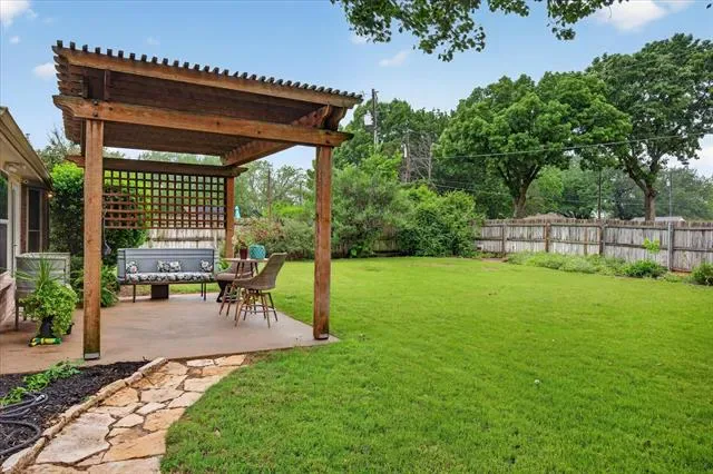 Hard to find in the Southtown area of Granbury. Come see this 3 bedroom, 2 bath, 2 car garage and half bath in the garage home just minutes from Harbor Lakes Golf course, ride your golf cart to go shopping, dining and close to the the Historic Granbury square. This home is move in ready. Has a privacy fence around the beautiful park like back yard. In the back yard you will find a pergola just outside the screened in back porch, a rocked sitting area, flower beds, shrubs and on the side of home extra drive for a boat or RV. The home is a split bedroom set up, and has ensuite primary bedroom, bath setup. The backporch has been closed in to make a 15 x 7 enclosed, screened back porch for sitting and enjoying the morning coffee or evening atmosphere. Living room has a wood burning fireplace and is sitting in an open concept with small dining room and opens to kitchen with an island and sit down bar area. Home has window coverings and blinds which convey. Vaulted ceilings in the living area and some bedrooms make the home have bigger feel. Seller is willing to sell the refrigerator, washer and dryer.