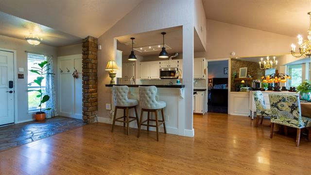 Built-in Features, Cathedral Ceiling(s), Chandelier, Decorative Lighting, Double Vanity, Eat-in Kitchen, Flat Screen Wiring, Granite Counters, High Speed Internet Available, Natural Woodwork, Open Floorplan, Paneling, Pantry, Smart Home System, Sound System Wiring, Vaulted Ceiling(s), Wainscoting, Walk- In Closet(s)