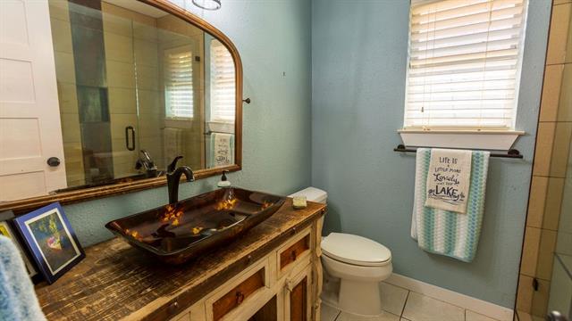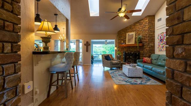 WATERFRONT CUL-DE-SAC. Live the lake life or establish your second home retreat with this 3 bedroom 2 bath that has been updated throughout! You asked and we listened: shoreline retaining wall and most of lower patio has been removed and is being converted to grass. The owner’s suite features french doors opening onto the back patio where you can wake up enjoying the amazing lake view. Also found in the owner’s suite is the updated bath featuring a garden tub and a stand up shower and a giant closet. The media room tucked away behind the kitchen and laundry room is wired for surround sound and features bookshelves lining one of the walls. The guest bedroom features an anteroom that you can use for storage or sit and enjoy the view. The sunroom at the back of the living room features a picture window where you can see the hidden cove and drink your coffee in the morning or finish your day with a nice bottle of wine. A winding stone stairway leads you downhill from the upstairs patio to your covered dock. Electrical panel updated August 2025. Home and dock roof replaced in 2021. 5-ton HVAC installed in 2019. Updated appliances. Furniture and all appliances can convey. Listing broker is owner.
