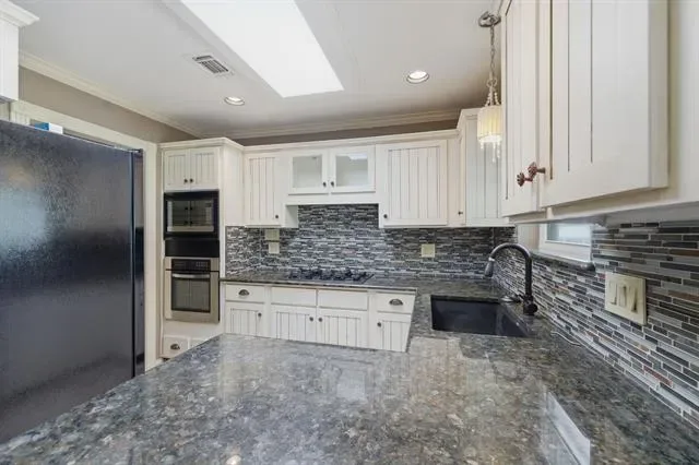 Two versatile 12×20 outbuildings, both fully powered and floored, offer endless possibilities for hobbies, storage, or workspace. Inside, thoughtful updates shine throughout: granite countertops, modern flooring, and a custom coffee bar with an additional sink for extra prep space. Nearly all windows and doors have been replaced, with the exception of the two bathrooms, which retain charming stained-glass accents, and the entry door to garage.