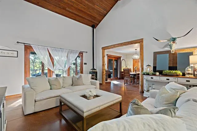 Welcome to your dream waterfront retreat on Lake Granbury! This stunning 4-bed, 2.5-bath home offers the perfect blend of modern upgrades, natural beauty, &' peaceful privacy. Nestled on over an acre &' surrounded by more than 65 mature cedar trees, the property has the feel of a secluded mountain lodge situated on the water’s edge.