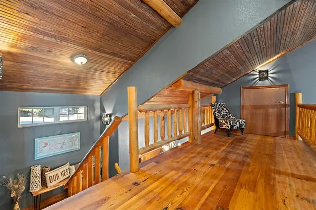 Inside, the home features 2 spacious living areas &' a cozy wood-burning stove, ideal for quiet evenings in. Granite countertops run throughout the home with upgraded KitchenAid black stainless-steel appliances in 2023. Beautiful knotty pine stairs lead to the upper level, where you’ll find pine flooring &' a private terrace—perfect for soaking in spectacular lake views.